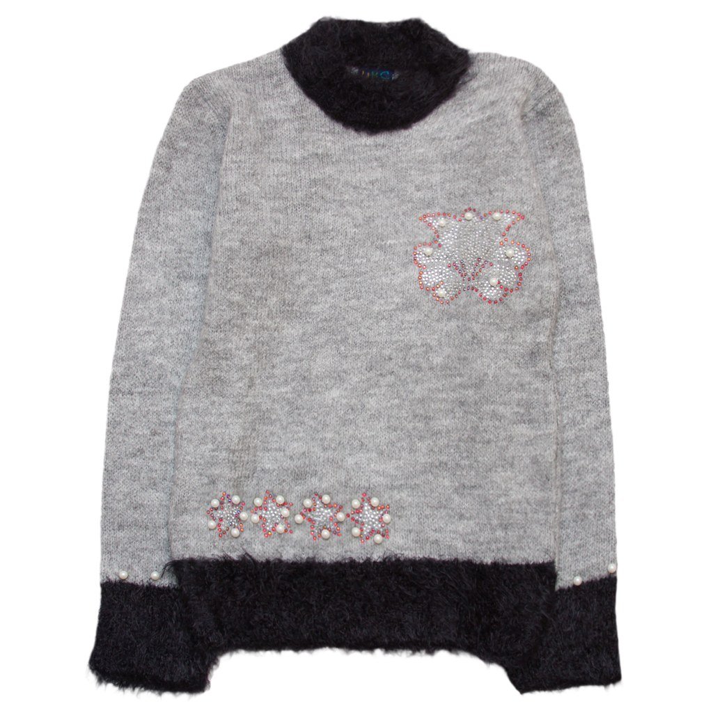 Наверное каждая мамочка проходила это испытание со своим ребенком. С наступлением холодов, нужно одеваться потеплее. И когда свитер колется, дети категорически отказываются одеваться. Но мы для вас приготовили классную новинку! Серый свитер для девочки невероятно мягкий и теплый. Интересный дизайн на рукавах, горловине и по низу свитера в виде травки — это девочки все очень любят. Так же, по переду свитера и по низу рукавов есть милое украшение из бусинок и стразов. Такое изделие Вашей юной моднице точно придет по душе.