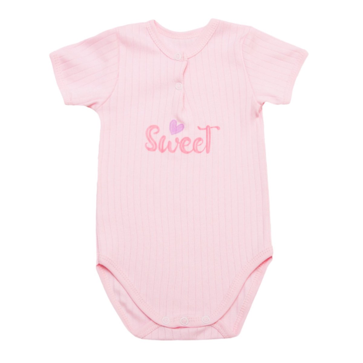Комфорт и забота для вашего малыша - вот что отличает этот боди. Выполненное из высококачественного полотна - интерлок рапорт, оно приятно облегает нежную кожу, обеспечивая максимальный уют и тепло. Минимальный, но стильный принт розового цвета с надписью sweet придаёт изделию особую изюминку, делая его ещё более привлекательным. Кнопочки, расположенные возле горловины и внизу, позволяют легко одевать и снимать боди, не причиняя дискомфорта ребёнку. Это идеальный вариант для повседневных прогулок и активных игр, когда важно, чтобы одежда не ограничивала движения и позволяла коже дышать.