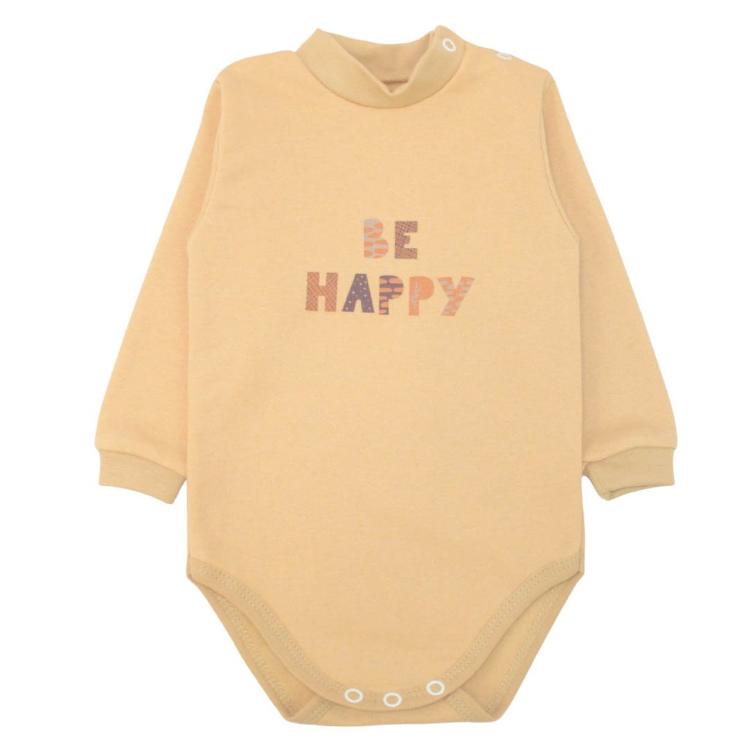 Боди- гольф это идеальный вариант одежда на холодное время года. Так шея плотно закрывается стойкой бодика, и малышу не страшны сквозняки. Данная модель, бежевого цвета, с принтом Be Happy, пошита из начесного полотна, которое состоит полностью из хлопка. По низу боди есть кнопки, что облегчает переодевание ребенка. Также на плече есть кнопки. Украшением этого боди является красивый мультяшный рисунок по переду изделия. Также в нашем интернет-магазине вы можете приобрести и другие изделия для малыша, такие например как человечки, штанишки и так далее.