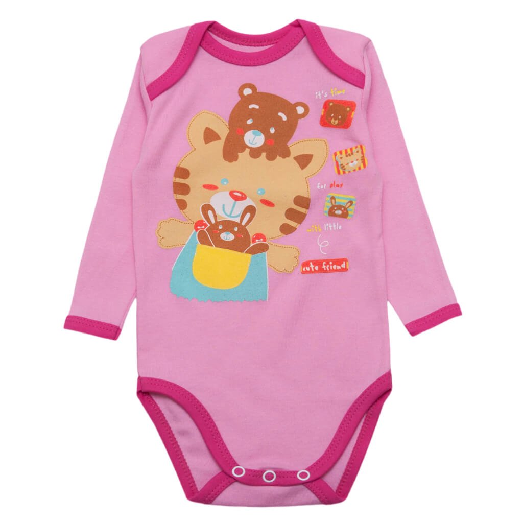 Одежда для самых маленьких должна быть нежной, комфортной и качественной, ведь кожа у младенцев очень чувствительна к раздражениям. А также должна быть практичной и максимально удобной при переодевании. Мы представляем Вам именно такую модель бодика для маленьких принцесс розового цвета. Бодик пошит из нежного, качественного хлопчатобумажного интерлочного полотна. По низу есть кнопочки, края бодика обработаны яркой бейкой. Горловинка достаточна свободная для удобного переодевания. Украшением бодика является очень милая покраска в виде мишек по переду изделия.