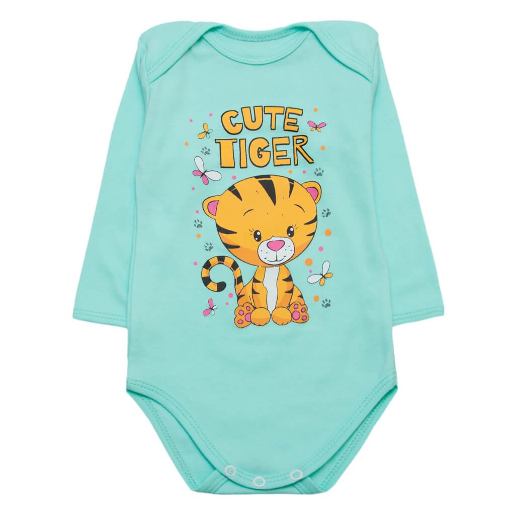 Одежда для самых маленьких должна быть нежной, комфортной и качественной, ведь кожа у младенцев очень чувствительна к раздражениям. А также должна быть практичной и максимально удобной при переодевании. Мы представляем Вам именно такую модель бодика для маленьких мятного цвета. Бодик пошит из нежного, качественного хлопчатобумажного интерлочного полотна. По низу есть кнопочки, края бодика обработаны яркой бейкой. Горловинка достаточна свободная для удобного переодевания. Украшением бодика является очень милая покраска тигренка по переду изделия .