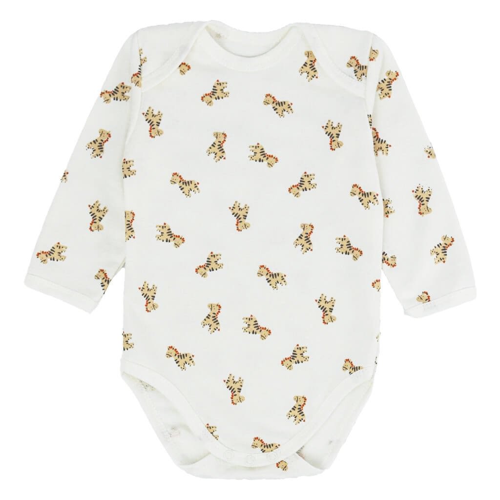 Детский молочный боди принт зебры с длинным рукавом пошит из высококачественного трикотажного полотна - начеса. Детские бодики давно обрели свою популярность и стали одной из самых необходимых вещей, которые должны быть в гардеробе каждого малыша. Представленная модель детского боди выполнена с горловиной в виде «лодочки» и кнопочками между ножек. По всему полотну присутствуют милые мордочки зверюшек. Края изделия обработаны бейкой в цвет полотна. Такой боди прекрасно подойдёт для прохладной погоды, так как полотно начёс отлично сохраняет тепло и не даст Вашему ребёночку замёрзнуть.