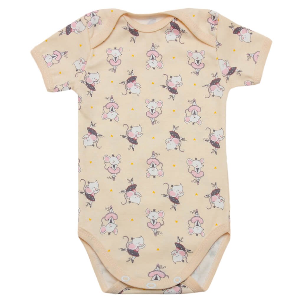 Наш сайт приятно удивит Вас своим большим количеством разнообразных боди. Данная модель боди для девочки изготовлена, как и большинство ясельной одежды, из качественного интерлока желтого цвета с рисунком мышки. А также уже знакомый всем дизайн - боди с коротким рукавом, горловиной в виде «лодочки» и кнопочками снизу. Само полотно не однотонное, на нём есть красивенькие рисуночки, которые Ваша малышка точно оценит. Края горловины, рукавов, а также низ обработаны бейкой. Материал очень мягкий на ощупь и приятный к телу, в самый раз для нежной кожи малыша.