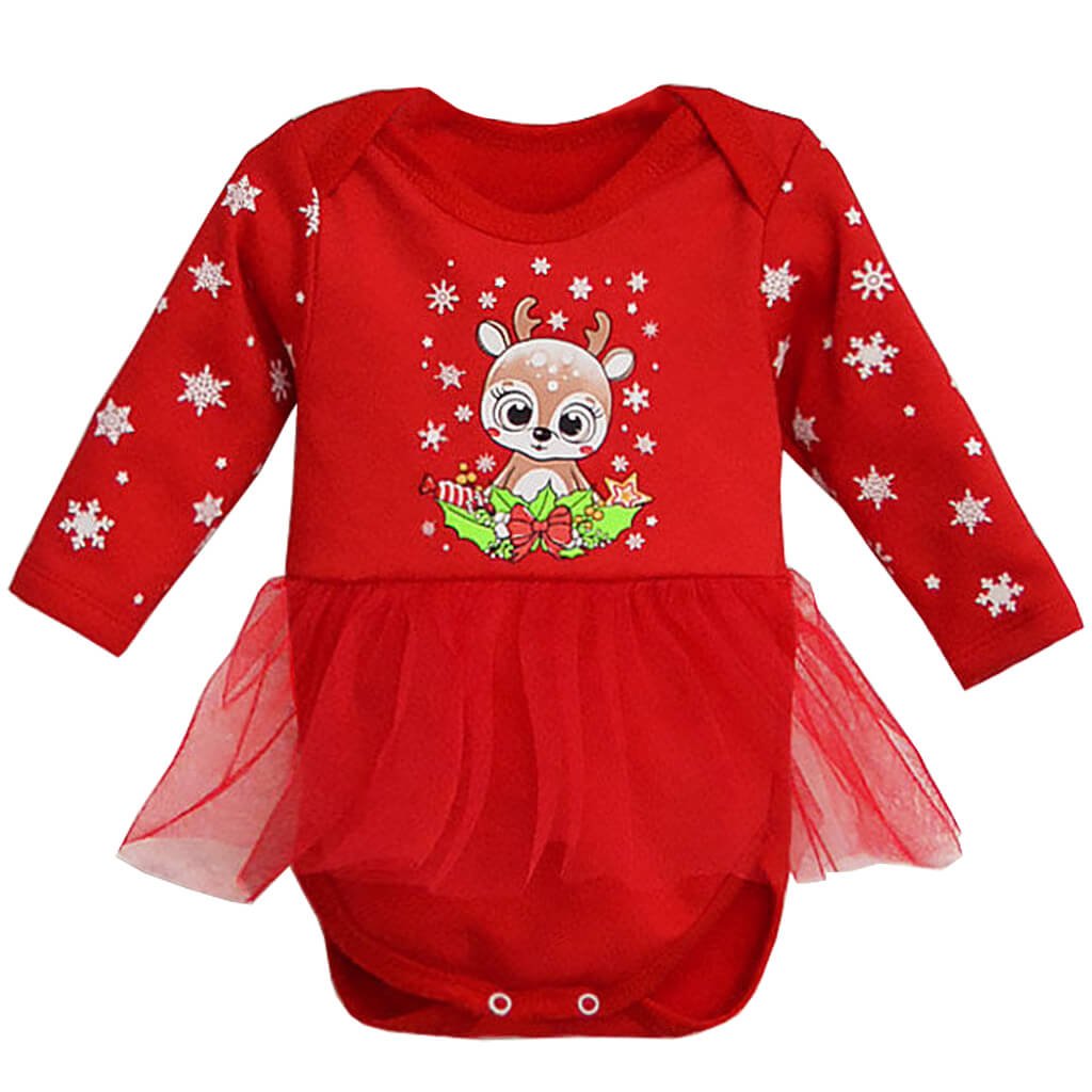 Красивый боди для маленьких принцесс, изготовлен из утеплённого трикотажного полотна - начёс. Боди выглядит нарядно и отлично подойдёт в качестве наряда на зимние праздники. Детский бодик с длинным рукавом, горловина лодочкой, снизу застёгивается на двух кнопках, красного цвета, принт оленёнок. По поясу модели пришит фатин, который имитирует юбочку. Спереди на груди и на рукавах милые рисунки с зимней тематикой. В таком бодике Ваша принцесса сбудет чувствовать себя очень комфортно! Аксессуар в виде повязки или нарядной шапочки дополнит образ малютки.