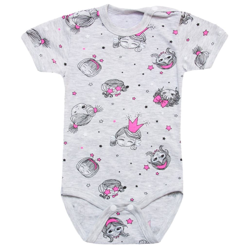 Боди-футболка, серого цвета, с коротким рукавом для девочки - это отличный вариант на лето! Изделие изготовлено из достаточно эластичного полотна - стрейч-кулир. Ткань хорошо тянется, при этом, прекрасно держит форму. Весёлые рисунки на изделии поднимут настроение Вам и Вашей малышке. По краям боди обшит бейкой в тон полотну. Снизу боди застёгивается на двух кнопках, а изюминкой бодика является кнопка на плече. За счёт этой кнопки процесс одевания маленькой модницы теперь не будет таким затруднительным. Желаем приятных покупок с ТМ "Арлекин".