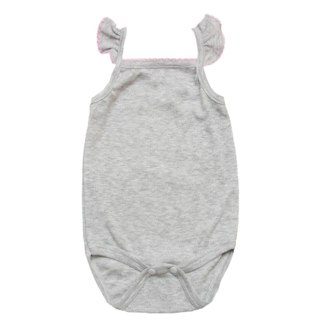 В нашем интернет-магазине «Арлекин» представлено невероятно большой ассортимент различных детских бодиков. Боди - одна из самых удобных вещей для самых маленьких. Данная модель боди-майки для девочки серого цвета изготовлена из качественного и гипоаллергенного полотна - рибаны жаккард, которое состоит на 100% из хлопка. Такая ткань достаточно прочная и долговечная. Бодик застёгивается внизу на кнопочки. Лямки украшают красивые крылышки и миленькая бейка по краях. Мы с нетерпением ждём Ваш заказ на нашем сайте! Удачных покупок.