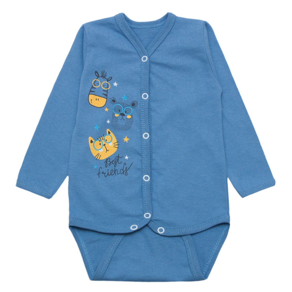 Боди для мальчика Модель 6139-022 Серо-голубой Зверята