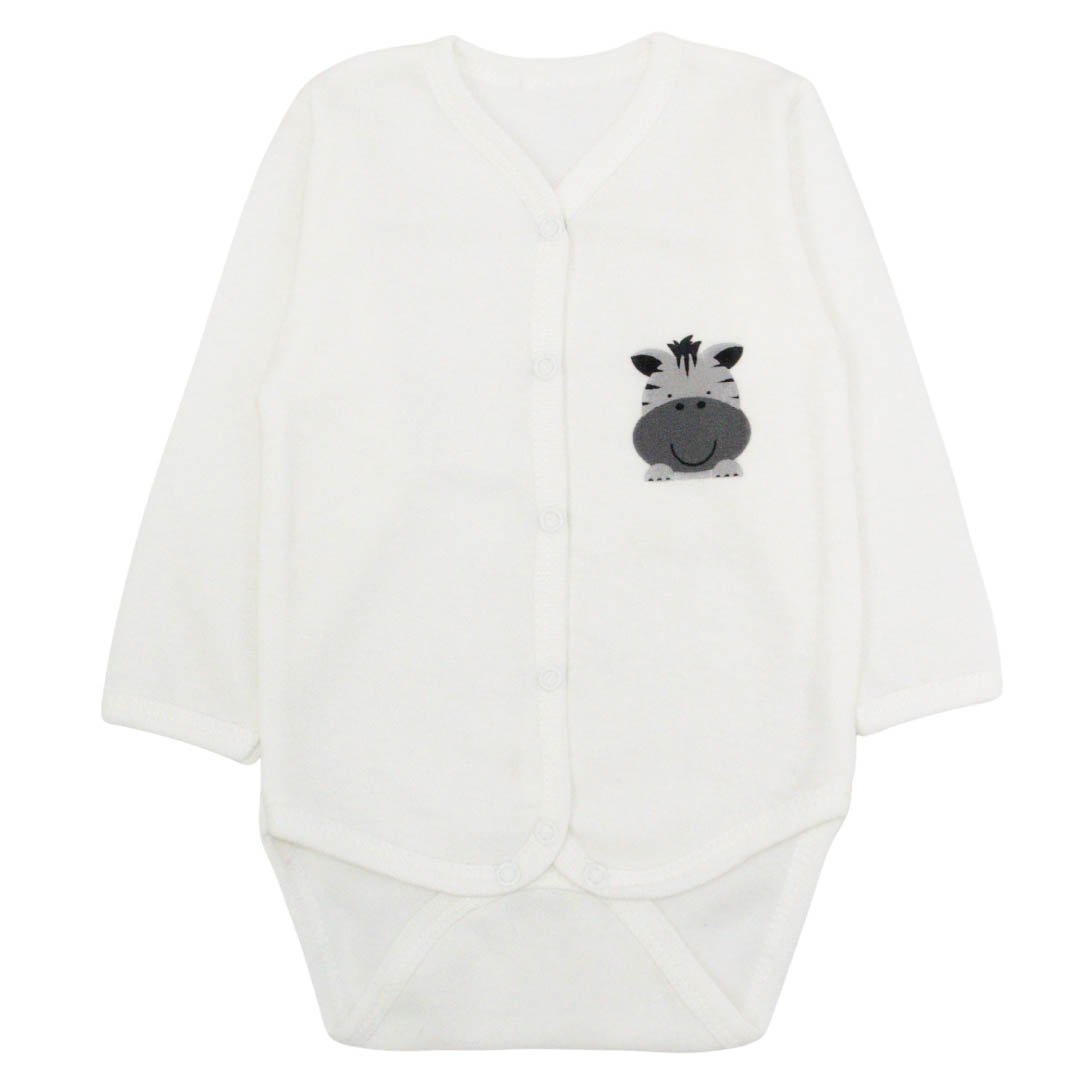 Яркий, интересный детский бодик. Эта моделька уникальна по своему. Полотно, из которого сделано изделия - «начес». Оно прочное, хорошо впитывает и прекрасно отстирывается, что не мало важно для мам. Бодик молочного цвета с принтом зебры обшит контрастной бейкой – это делает его свежее и интереснее. Бодик полностью на кнопках-застежках - это для вашего, мамочки, удобства. Вы сможете быстро и без проблем снять его при необходимости. На каждой модельке есть свой рисунок и каждая моделька имеет свой цвет, по этому вы можете с легкостью выбрать именно то что Вам нужно. ТМ Арлекин предоставляет все условия для каждого покупателя.