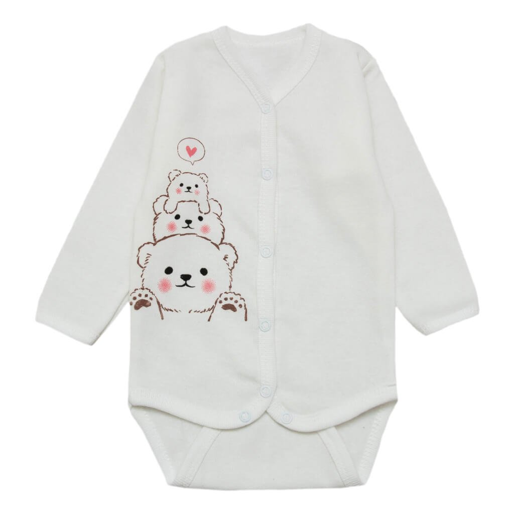 Яркий, интересный детский бодик. Эта моделька уникальна по своему. Полотно, из которого сделано изделия - «начес». Оно прочное, хорошо впитывает и прекрасно отстирывается, что не мало важно для мам. Бодик молочного цвета с принтом мишек обшит контрастной бейкой – это делает его свежее и интереснее. Бодик полностью на кнопках-застежках - это для вашего, мамочки, удобства. Вы сможете быстро и без проблем снять его при необходимости. На каждой модельке есть свой рисунок и каждая моделька имеет свой цвет, по этому вы можете с легкостью выбрать именно то что Вам нужно. ТМ Арлекин предоставляет все условия для каждого покупателя.