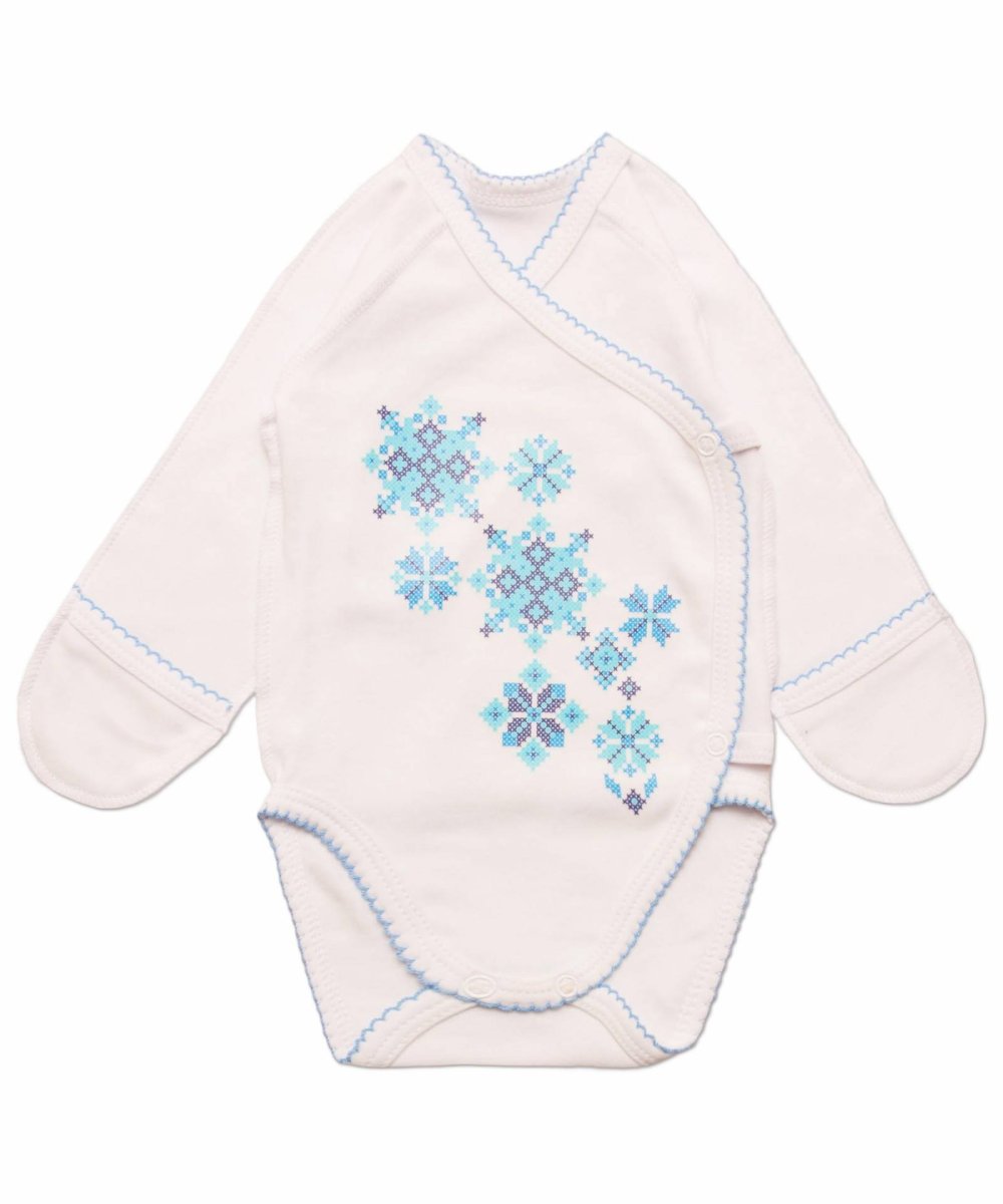 Боди для мальчиков. Боди - это одна из самых незаменимых вещиц для мамочек. Они просты и удобны в носке. Благодаря кнопочкам - их легко одевать и снимать. Боди ясельное изготовлено из хлопчатобумажного интерлочного полотна. Рукав - реглан. По низу рукава карманчик "антицарапка". В изделии исполнена отделка ажурной строчкой "крошеттой". По переду полочки красивый рисунок в народном украинском стиле "вышивка крестиком". Нежный белый цвет боди замечательно сочетается с ярким, но одновременно нежным рисунком.