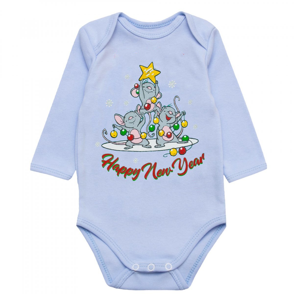 Боди детский (новогодние мышата) Модель 6220-042 Голубой