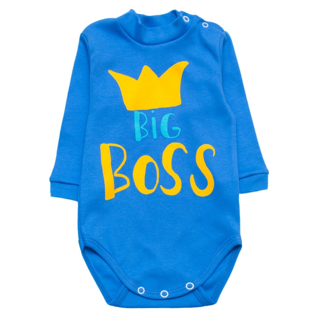 Боди-гольф для мальчика изготовлен из высококачественного хлопкового полотна - интерлок, которое при правильном уходе долго сохраняет свой первоначальный внешний вид. Полотно однотонное, но спереди на изделии расположен яркий рисунок - накат. Боди-гольф подучил своё название за счёт воротника-стойки, поэтому данная модель отлично подойдёт на прохладное время года. Вы  не столкнётесь с трудностями одевания такого боди на ребёнка, ведь сбоку на воротнике и плече изделие имеет 2 кнопки, а также 3 кнопки расположены между ножек, боди будет надежно закреплён на Вашем карапузе. Ещё одним преимуществом этой модели детского боди являются манжеты на рукавах.