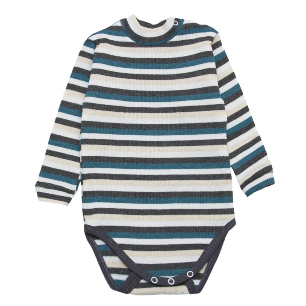 Детский бодик пошит из теплого полотна - рубчик начёс. Бодик в темно-бирюзовых оттенках сделан гольфиком, то-есть горлышко закрыто, а также на плечике есть кнопочки. На рукавах манжеты из такого же полотна. Низ боди обработан бейкой и также застегивается на кнопочки. Полотно качественное, со времен не кошлатится, и не теряет форму после стирки. Имеет начёс с внутренней стороны, что добавляет дополнительный теплый эффект. Покупайте одежду в нашем интернет-магазине и дарите деткам комфорт и красоту. Удачных покупок вместе с ТМ "Арлекин".