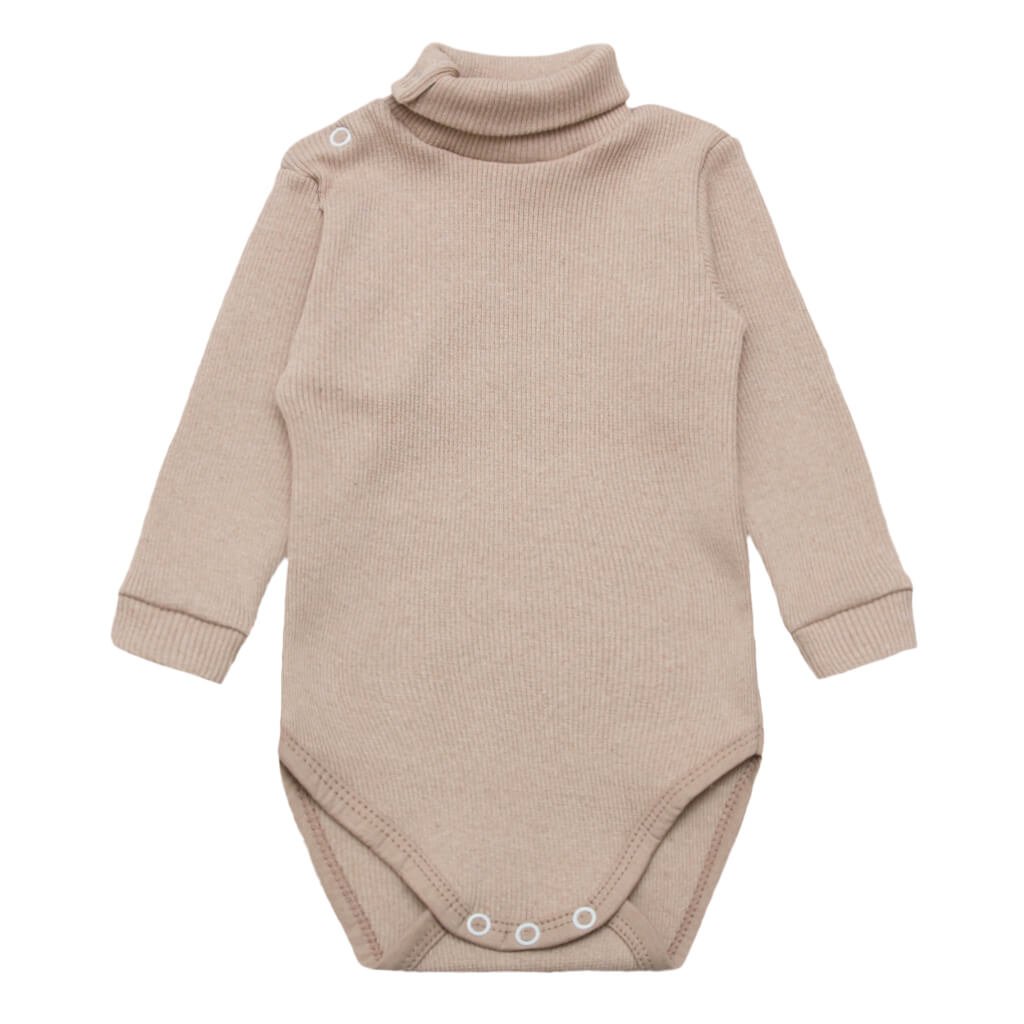 Детский боди бежевого цвета из полотна рубчик с начесным утеплением - идеальный выбор для холодного времени года. Тёплый, мягкий и приятный на ощупь материал обеспечивает комфорт малышу в осенне-зимний период. Высокое горлышко защищает шею от холода, что особенно важно при прогулках на свежем воздухе или в прохладных помещениях. Манжеты на рукавах надежно фиксируют рукава, предотвращая их задирание. Для удобства одевания и переодевания предусмотрены кнопки на плечиках возле горловины. В нижней части боди также расположены кнопки, которые позволяют легко сменить подгузник. Боди выполнен в классическом стиле с однотонным дизайном, что делает его подходящим как для мальчиков, так и для девочек.