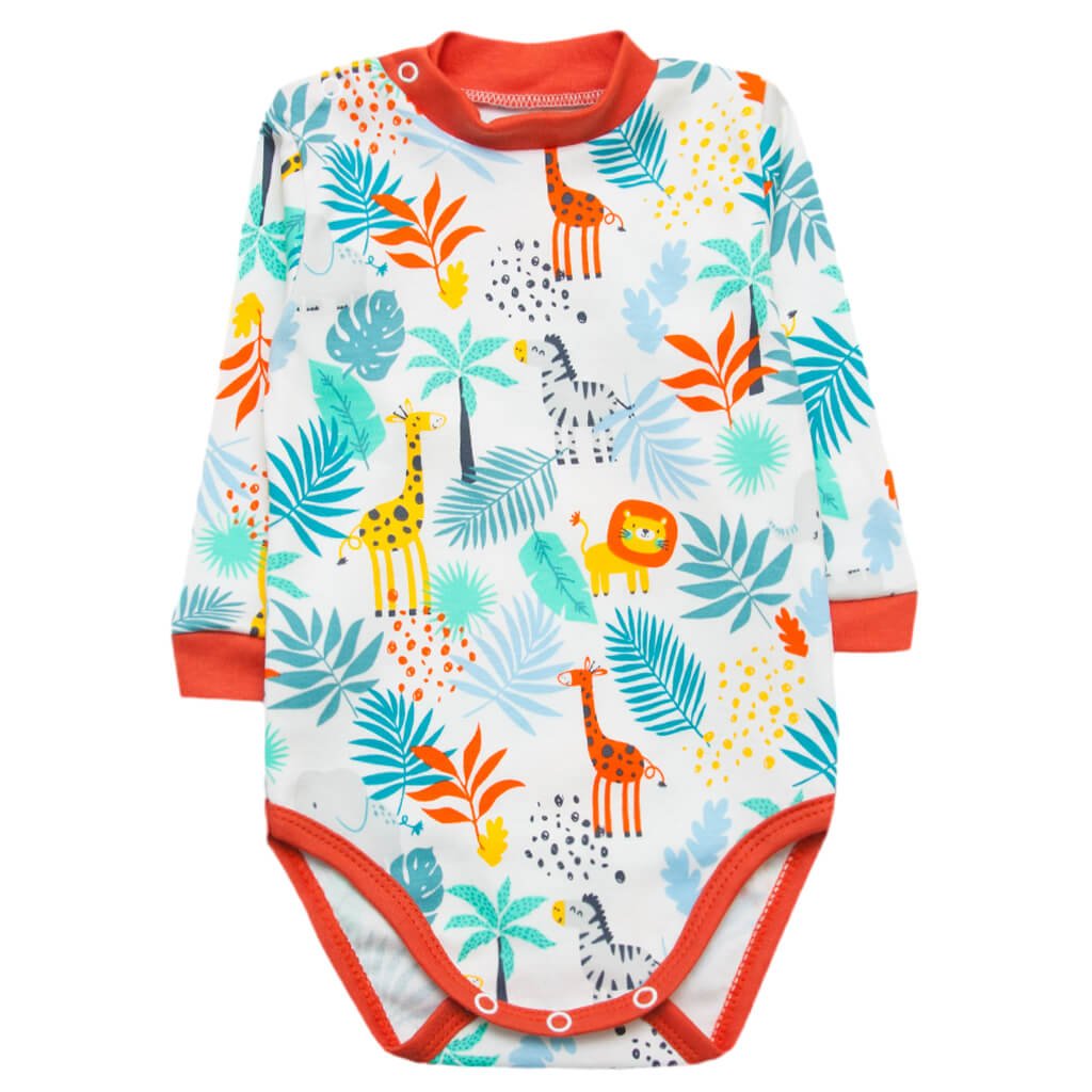 Боди-гольф детский, принт сафари, изготовлен из натурального, состоящего на 100% из хлопка, интерлочного полотна. Боди сделан гольфом и будет плотно закрывать шею малыша. На одном плечике есть кнопочки, что очень удобно при переодевании малыша. На рукавчиках манжеты из основного полотна. По низу бодик застегивается на кнопки и обработан бейкой. Такой бодик можно с легкостью комбинировать со штанишками или ползунками, которые Вы также можете приобрести в нашем интернет-магазине, в разделе "Ясельный трикотаж".