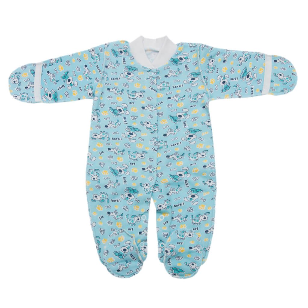 Человечек пошит из хлопчатобумажного начесного полотна, цвет бирюза, принт собачка. Он очень удобный и практичный в носке. Застежка на кнопках расположена сверху и вниз по ножкам, поэтому Вам легко будет переодевать малыша. Все швы выполнены наизнанку и ребенку не будет ничего давить и натирать. Данное изделие можно одевать как спальник, поддевать под что-то теплое на прогулку или просто носить дома. Подберите расцветку и подходящий размер для своего малыша и закажите в нашем интернет-магазине этот человечек. Сделав покупку на нашем сайте, вы точно останетесь довольны своим выбором!