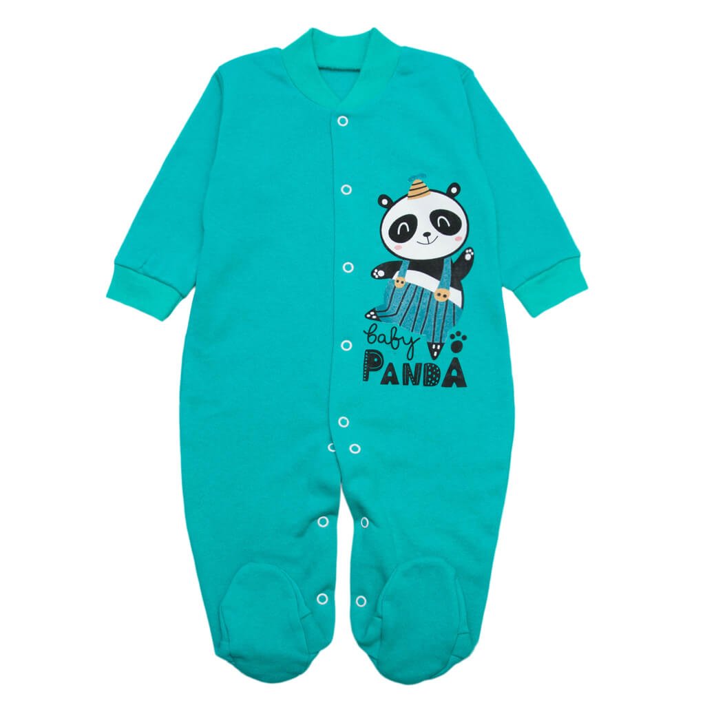 Человечек детский, мятного цвета с рисунком панды пошит из натурального начесного полотна. По всей длине изделия есть кнопки на которые и застегивается человечек, что позволяет с легкостью переодевать малыша. Воротник сделан стойкой из эластичного манжета, на рукавах также есть манжеты, ножки закрытые. Однотонные цвета дополняют красивые, яркие и веселые покраски по переду человечка, на одной из полочек. Подберите нужный Вам размер, цвет и сделайте заказ в нашем интернет-магазине. И Вашей малышке будет удобно и комфортно в таком человечке.
