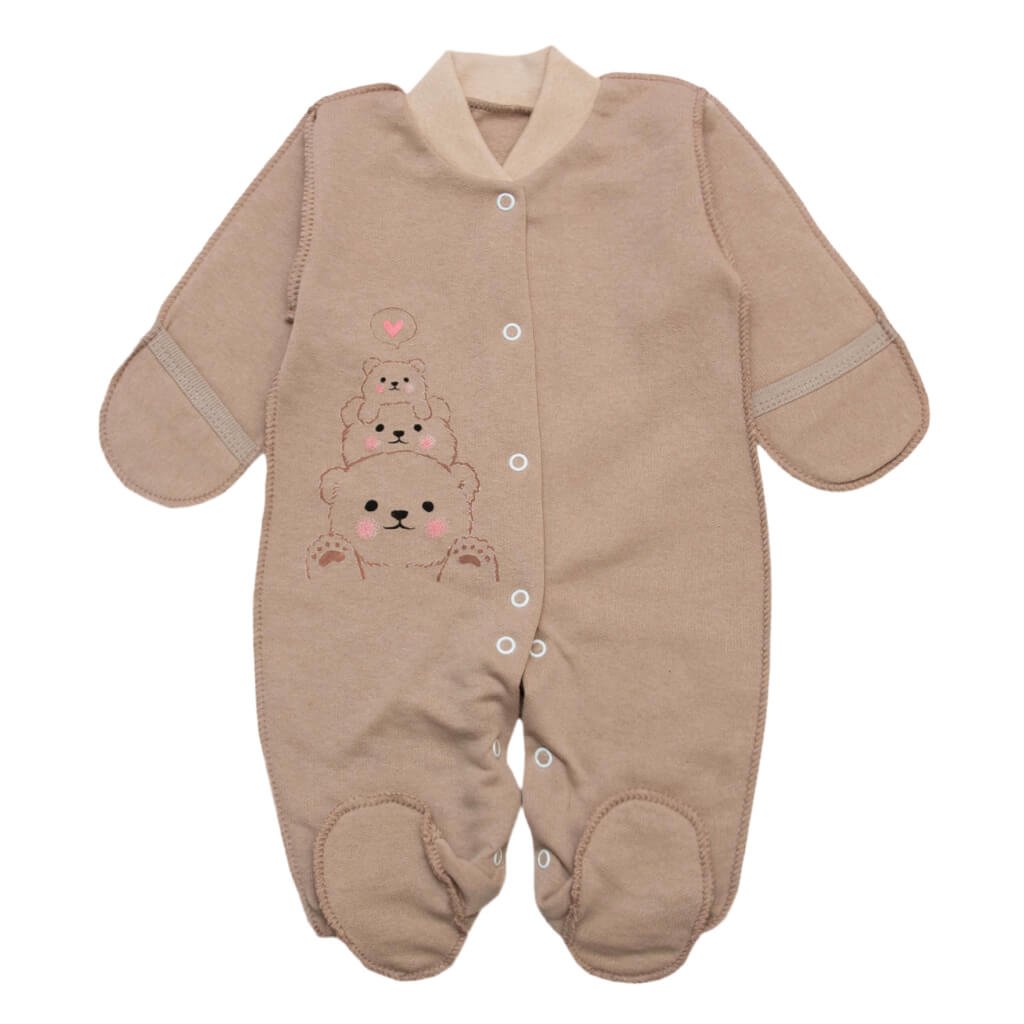 Человечек детский, бежевого цвета с принтом мишек, пошит из натурального однотонного начесного полотна. Модель удобная и комфортная для младенца. От воротника до пяточек человечек застегивается на кнопочки, что очень удобно при переодевании карапуза. Ножки закрытые, это тоже очень удобно не требует дополнительно одевать на ножки носочки. Рукава сделаны карманчиками, которые можно открывать или закрывать. Швы сделаны на изнанку. Красивые цвета человечков дополнены яркими мальчиковыми рисунками. ТМ "Арлекин" делает только качественные вещи для Ваших деток.