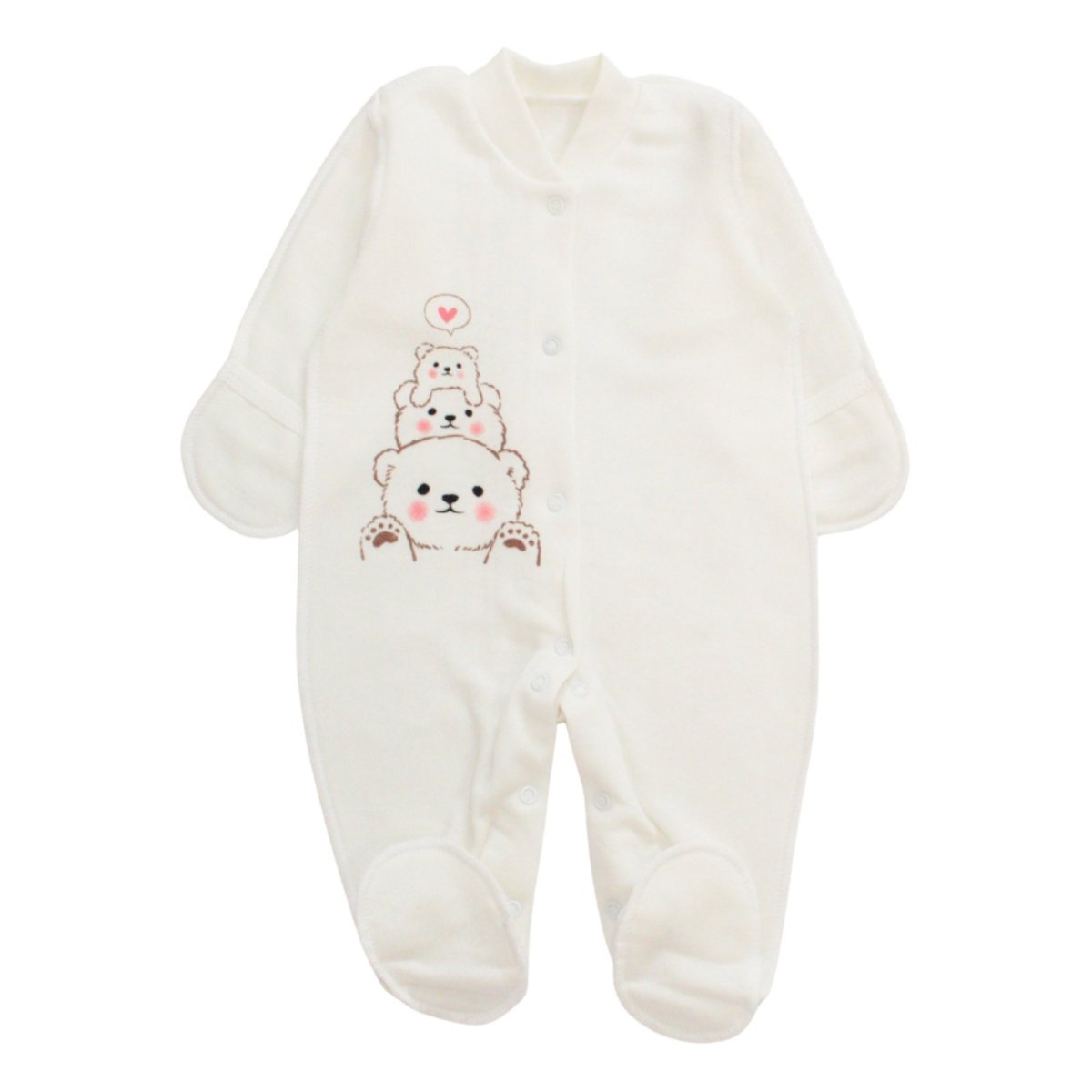 Человечек детский, молочного цвета с принтом мишек, пошит из натурального однотонного начесного полотна. Модель удобная и комфортная для младенца. От воротника до пяточек человечек застегивается на кнопочки, что очень удобно при переодевании карапуза. Ножки закрытые, это тоже очень удобно не требует дополнительно одевать на ножки носочки. Рукава сделаны карманчиками, которые можно открывать или закрывать. Швы сделаны на изнанку. Красивые цвета человечков дополнены яркими мальчиковыми рисунками. ТМ "Арлекин" делает только качественные вещи для Ваших деток.