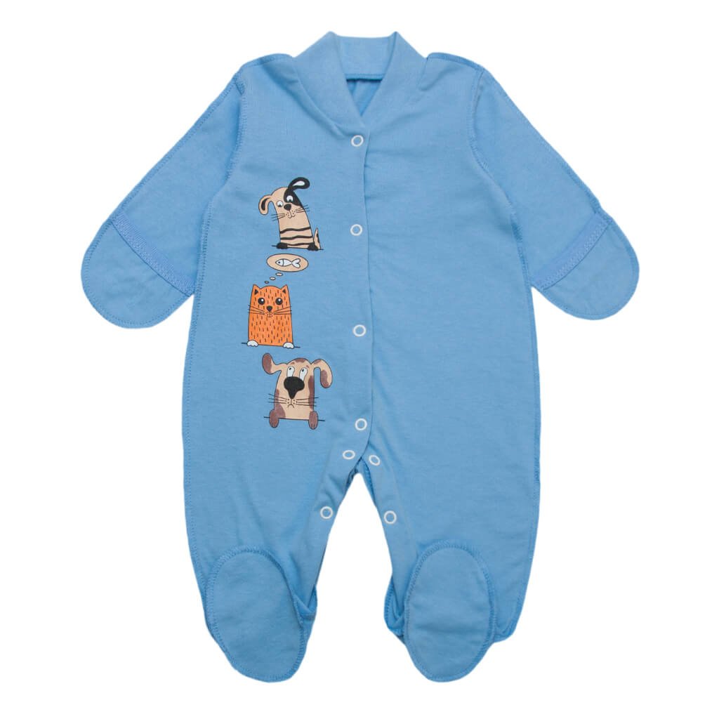 Человечек детский голубого цвета с покраской собачек, выполнен из хлопчатобумажного кулирного полотна. Полотно легкое, тоненькое, натуральное, не вызывает аллергии, нежная кожа малыша будет дышать. По переду - застежка на кнопках, которая идет вниз по ножкам. На горловинке манжет. Украшает изделие - милая покраска, которая отлично сочетается с цветом полотна. Такой человечек легко и удобно одевать, а также стирать и гладить. В нем вашему малышу будет уютно и комфортно. Приятных покупок и хорошего дня!