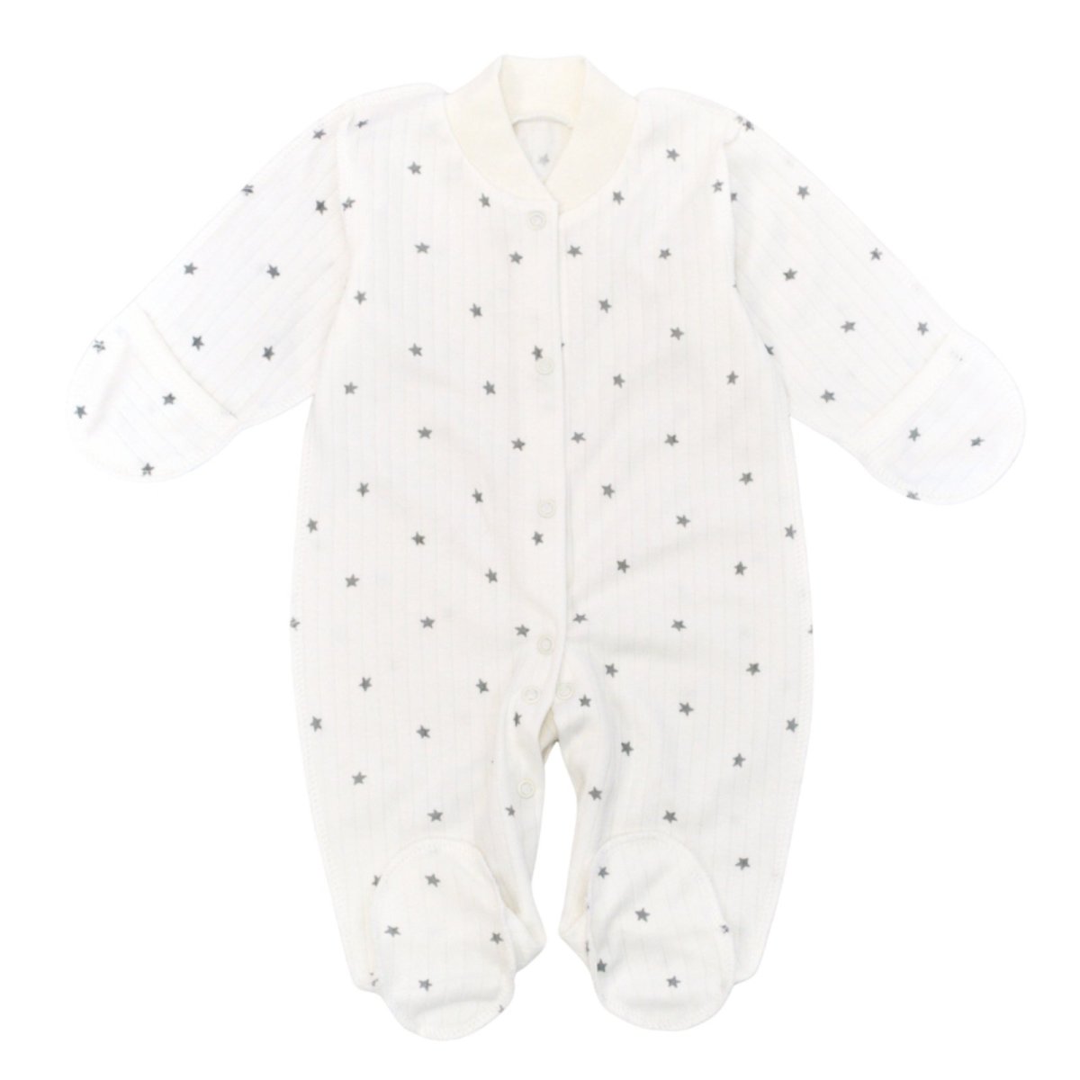 Детский человечек для новорожденных, выполненный из полотна интерлок рапорт, создан для комфорта Вашего малыша. Интерлок - это мягкая, плотная и натуральная ткань, которая идеально подходит для нежной кожи новорожденного. Она не вызывает раздражений, позволяет коже "дышать" и сохраняет тепло, что особенно важно для первых месяцев жизни. Человечек имеет закрытые ручки и ножки, что обеспечивает дополнительное тепло и защиту для маленького ребёнка. Размеры представлены для малышей ростом 56 и 62 см, что позволяет выбрать подходящий вариант для самых маленьких. Модель молочного цвета с принтом серых звездочек,но доступна в нескольких нежных и приятных расцветках, которые подойдут как для мальчиков, так и для девочек.