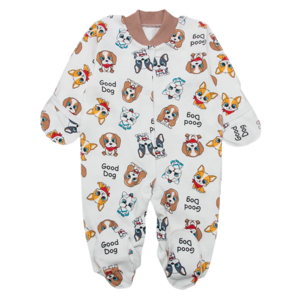 Человечек детский выполнен из хлопчатобумажного полотна интерлок, цвет Мокко, рисунок собачки. Полотно мягкое, приятное к телу, не вызывает аллергии. По всей длине кнопочки, что позволяет с легкостью переодевать малышку. Воротник сделан стойкой, на рукавах карманчики, которые могут быть открытыми и закрытыми. Все швы в человечке сделаны на изнанку, Вашей малышке ничего не будет мешать и давить. Ножки закрытые, что тоже очень удобно, не нужно дополнительно одевать носочки малышке. В таком слипе Вашей девочке будет тепло и комфортно.