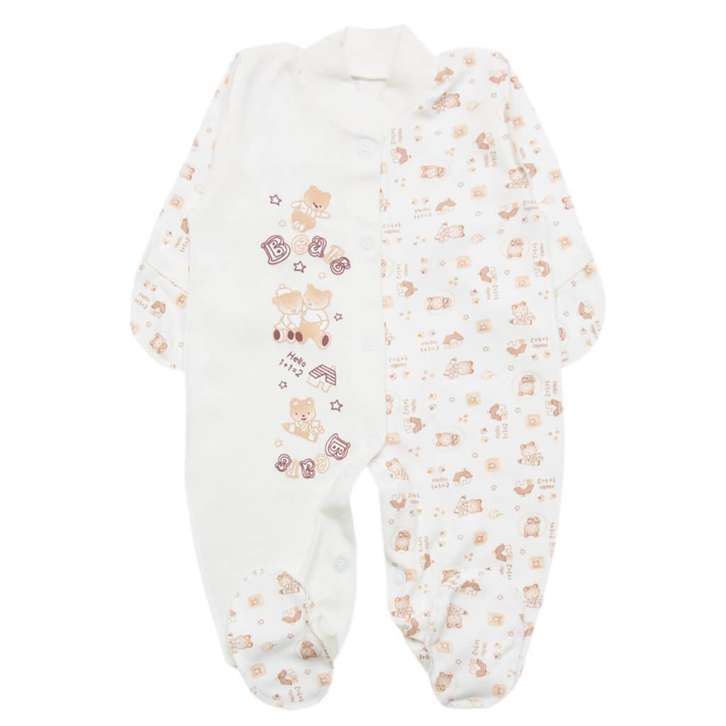Человечек для мальчика и девочки, изготовлен из хлопчатобумажного интерлочного полотна. Изделие с закрытыми ручками и ножками. Впереди застежка на кнопках, вниз по ножкам. Швы - выполнены "на лицо" для того, чтоб не натирало нежную кожу малыша. Изделие изготовлено из набивного полотна, по всему периметру расположены рисунки в виде бежевых мишек и домиков, а также есть покраска спереди, которая красиво смотрится и хорошо сочетается с цветом полотна. Порадуйте своего малыша качественной и натуральной одеждой от ТМ Арлекин. И вы будете спокойны за своего ребенка, ведь полотно не вызывает аллергии. Приятных покупок!
