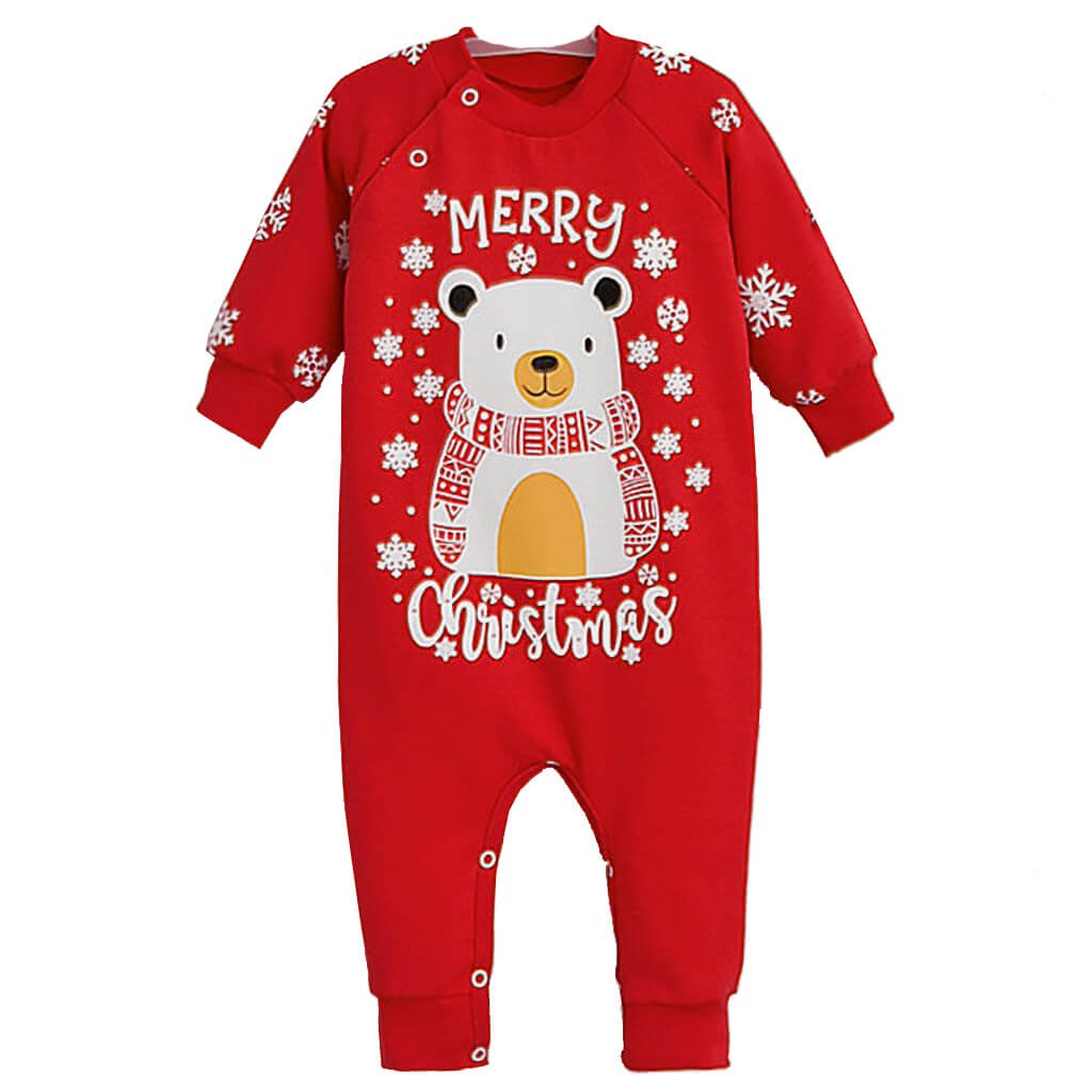 Начинается холодная зима с настоящей новогодней сказкой. К зимним праздникам Вы сможете подготовиться с нашим интернет-магазином ТМ Арлекин! Вашему вниманию представлен новая модель красного детского комбинезона принт мишка, который выполнен в новогоднем стиле. Человечек изготовлен из качественной и тёплого начёса. Ручки и ножки у изделия открыты. Края горловины, рукавов и ножек обработаны эластичными манжетами. На передней стороне комбинезона возле горловины есть кнопки, также они присутствуют снизу между ножек для удобного переодевания карапуза. Такой детский человечек с невероятным дизайном подарит настоящий уют Вашему малышу!