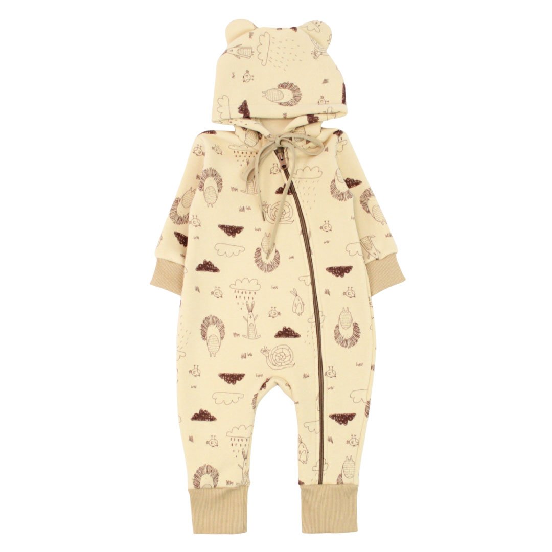 Новая модель детского комбинезона сочетает в себе уют, практичность и очаровательный дизайн, идеально подходя для прохладных прогулок и домашних игр. Изделие выполнено из мягкого полотна трёхнитки с начёсом бежевого цвета с принтом животных, которое отлично сохраняет тепло и при этом остаётся приятным к телу малыша. Комбинезон застёгивается на удобную молнию, проходящую по всей длине изделия, благодаря этому одевать ребёнка становится быстро и просто. Капюшон с завязками защищает голову от ветра и создаёт дополнительное ощущение уюта, а манжеты на рукавах и штанинах помогают сохранить тепло, не позволяя воздуху проникать внутрь. Тёплый, лёгкий и невероятно удобный - он станет верным спутником ребёнка в прохладное время года.