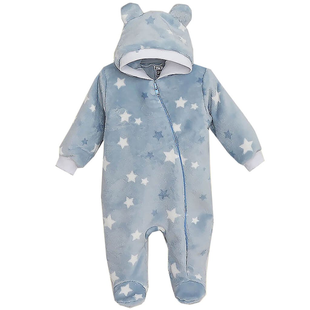 Детский комбинезон – уютное и тёплое решение для малышей в холодное время года. Изделие изготовлено из мягкого махрового материала голубого цвета с рисунком звездочек, обеспечивающего комфорт и тепло в холодное время года. Капюшон с милыми ушками добавляет игривости и защищает голову от переохлаждения. Застёгивается комбинезон на надёжную молнию, обеспечивая легкость одевания и снятия. Закрытые ножки и манжеты на руках создают дополнительную изоляцию, сохраняя тепло в любых условиях. Такой комбинезон - идеальный выбор для малышей на прохладный сезон.