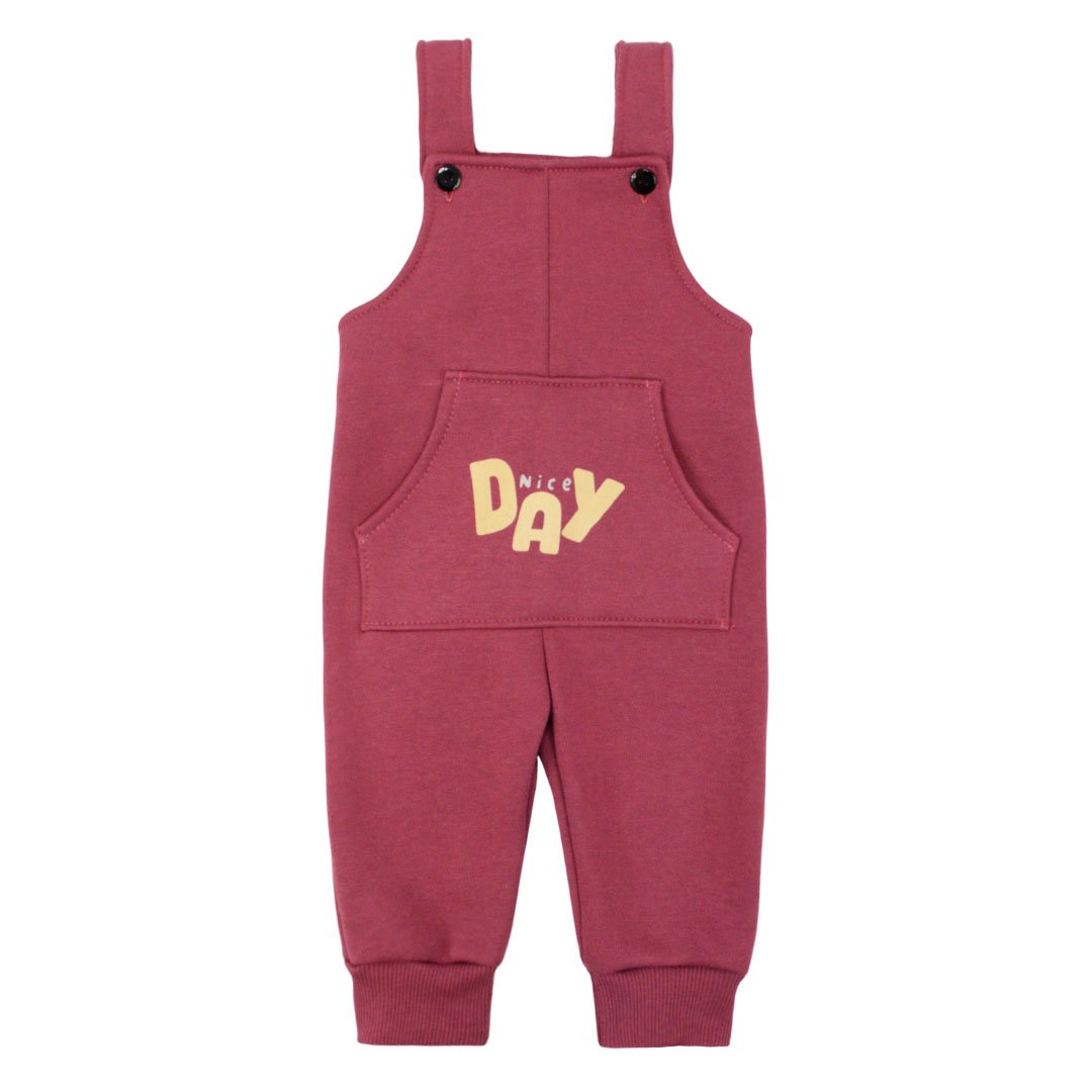 Тёплый уют начинается с мелочей - и этот детский комбинезон создан, чтобы каждая прогулка приносила только комфорт и радость. Модель выполнена из мягкого полотна трёхнитки с начёсом сливового цвета с надписью Nice day, которое прекрасно удерживает тепло и остаётся нежным к коже малыша. Комбинезон имеет продуманный фасон с удобными лямками на пуговицах. Спереди расположен карман с очаровательным принтом. Манжеты по низу брюк мягко прилегают, не давят и не позволяют холодному воздуху проникать внутрь. Сзади предусмотрена эластичная резинка, обеспечивающая идеальную посадку. Идеальный выбор для осени и зимы - стильный, тёплый и невероятно уютный.