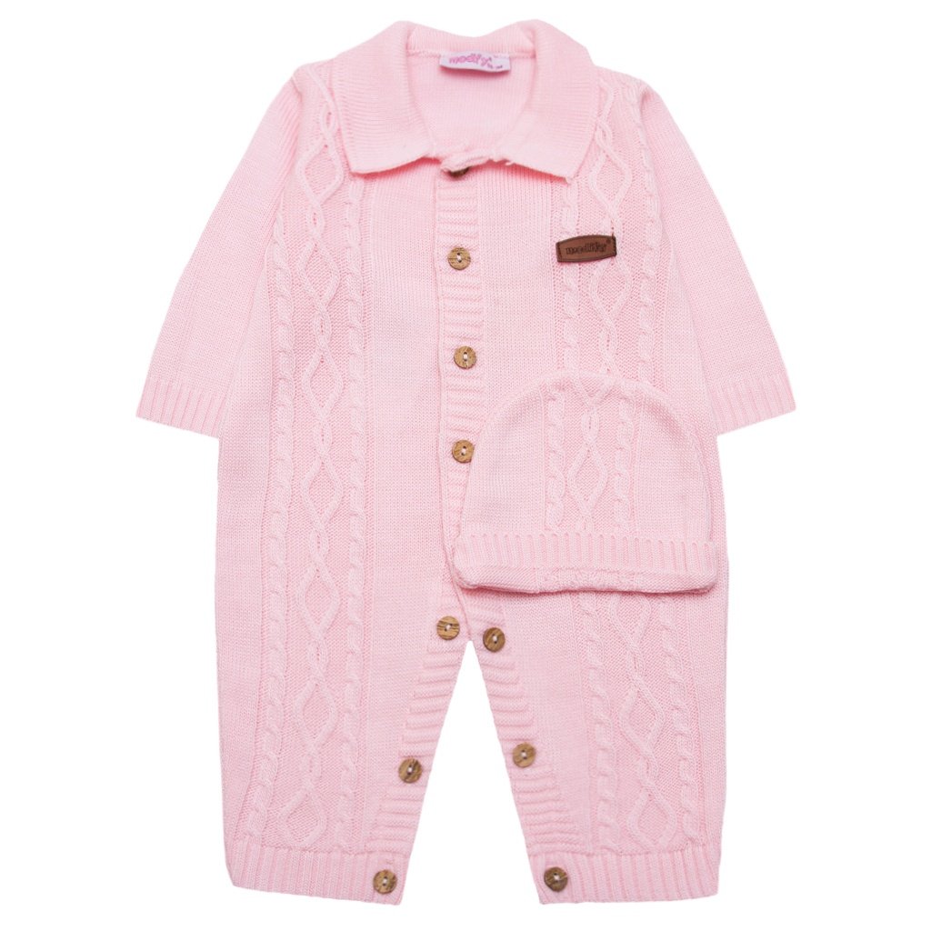 Вязаные вещи — это всегда тепло, красиво и комфортно. Данная модель розового цвета и состоит из человечка и шапочки для девочки. По всему изделию выполнена ажурная вязка. На человечке есть застежка из пуговок, которые размещены сверху и идут вниз по ножкам. Благодаря этому, изделие легко одевать и снимать. Комплект выполнен из качественной вязки. В состав нити входит шерсть и акрил. Поэтому, он очень мягкий и приятный на ощупь. Цвет набора очень нежный и красивый. Он точно подойдёт Вашей малышке. Приятных покупок на нашем сайте!