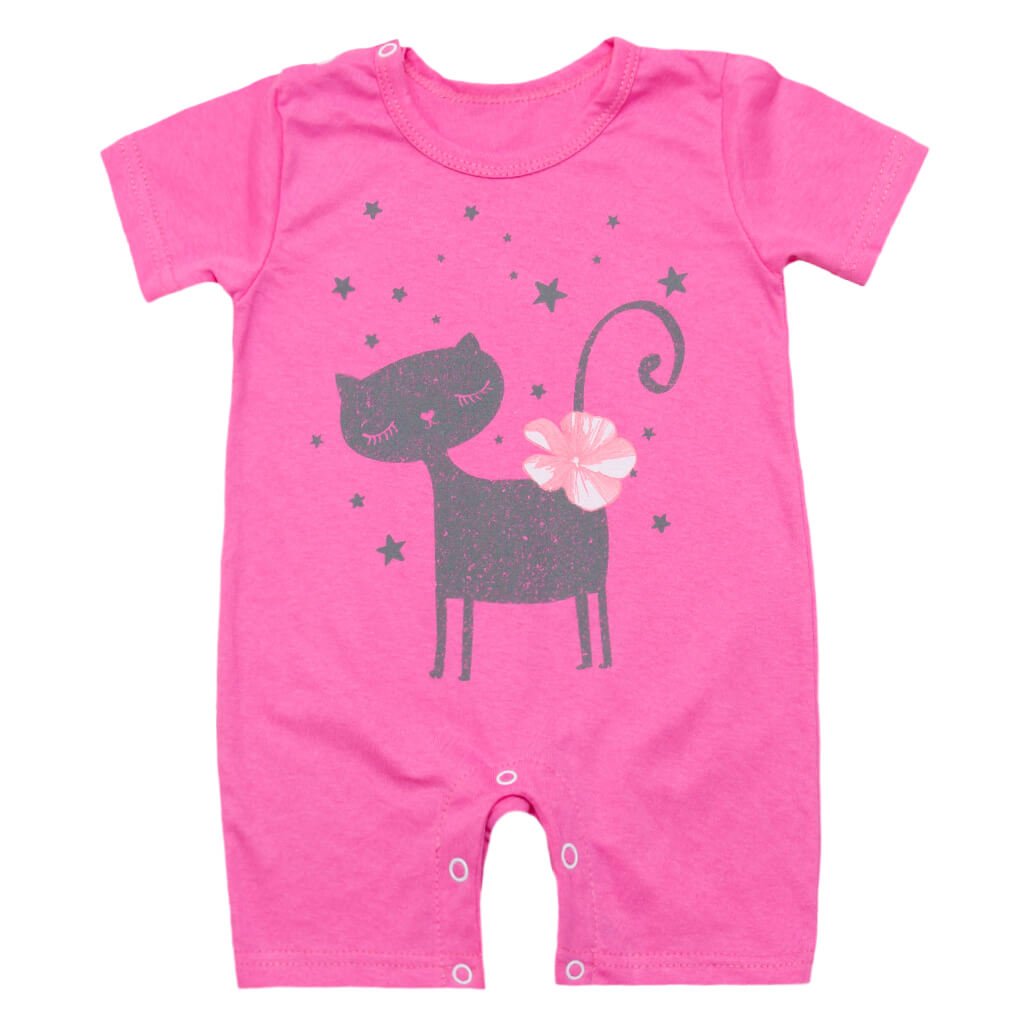 Розовый песочник с принтом кошечка для девочки изготовлен из натурального хлопчатобумажного полотна. Полотно приятное на ощупь и не превередливо в уходе. Легко стирается, сильно не мнется и быстро сохнет. На одном плечике есть кнопочки и горловина обработана бейкой в цвет полотна. По низу между ножек также есть кнопочки, что удобно при переодевании или смене подгузника. Рукава и низ песочника обработаны распошивом. По переду изделия красивая, милая покраска на детскую тематику. Такой вид одежды очень удобный для деток маленького возраста.