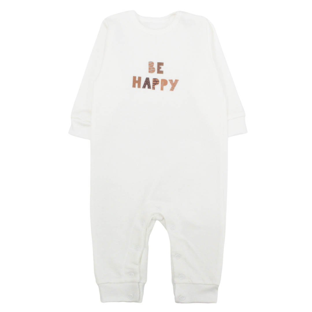 Зима уже совсем близко, а значит, пришло время позаботиться о теплом и уютном гардеробе для Вашего малыша. Детский ромпер молочного цвета с принтом Be happy из полотна начес станет отличным выбором для холодного времени года. Его мягкая и приятная к телу ткань с начесом обеспечивает тепло и комфорт даже в самые морозные дни. Такой ромпер - это не только практичная одежда для повседневной носки, но и стильное решение для праздничных событий благодаря яркому дизайну на передней части. Ромпер оснащен удобными кнопками по всей длине ножек, что облегчает процесс переодевания и смены подгузников. Кнопочки также предусмотрены возле горловины, что делает процесс одевания еще более быстрым и комфортным.