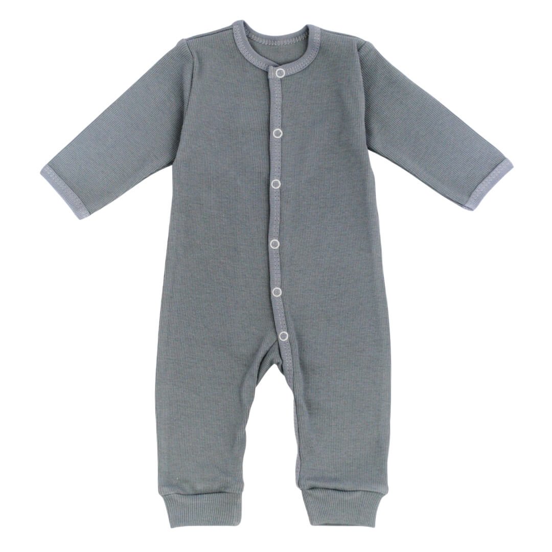 Представленная модель детского ромпера создана, чтобы обеспечить малышу комфорт с утра до вечера, независимо от активности и времени года. Выполнен из мягкого полотна «рубчик» серого цвета, которое приятно на ощупь, эластично и отлично пропускает воздух, поддерживая оптимальную температуру тела. Однотонный дизайн делает модель универсальной и лёгкой в сочетании с другими элементами гардероба. По всей длине расположены удобные кнопки, которые значительно упрощают процесс переодевания и позволяют быстро сменить подгузник, не доставляя лишнего дискомфорта ребёнку. Длинные рукава и закрытые ножки обеспечивают защиту и тепло в прохладную погоду.