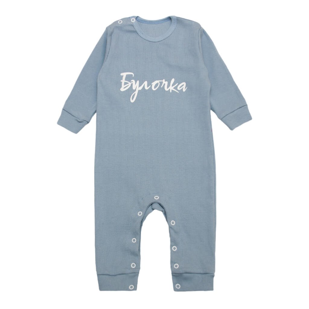 Этот очаровательный детский ромпер создан для тех, кто ценит комфорт и стиль даже в самом юном возрасте. Модель выполнена из приятного к телу полотна рубчик голубого цвета, которое отличается мягкостью, эластичностью и хорошей воздухопроницаемостью. Однотонный дизайн делает вещь универсальной, а милая надпись Булочка добавляет настроения. Удобные кнопки на плече и по низу изделия обеспечивают лёгкость при переодевании и смене подгузника. Манжеты на рукавах и штанинах плотно прилегают, не сдавливая кожу. Подходит для повседневной носки, сна и прогулок. В наличии несколько нежных расцветок, которые легко впишутся в гардероб малыша.