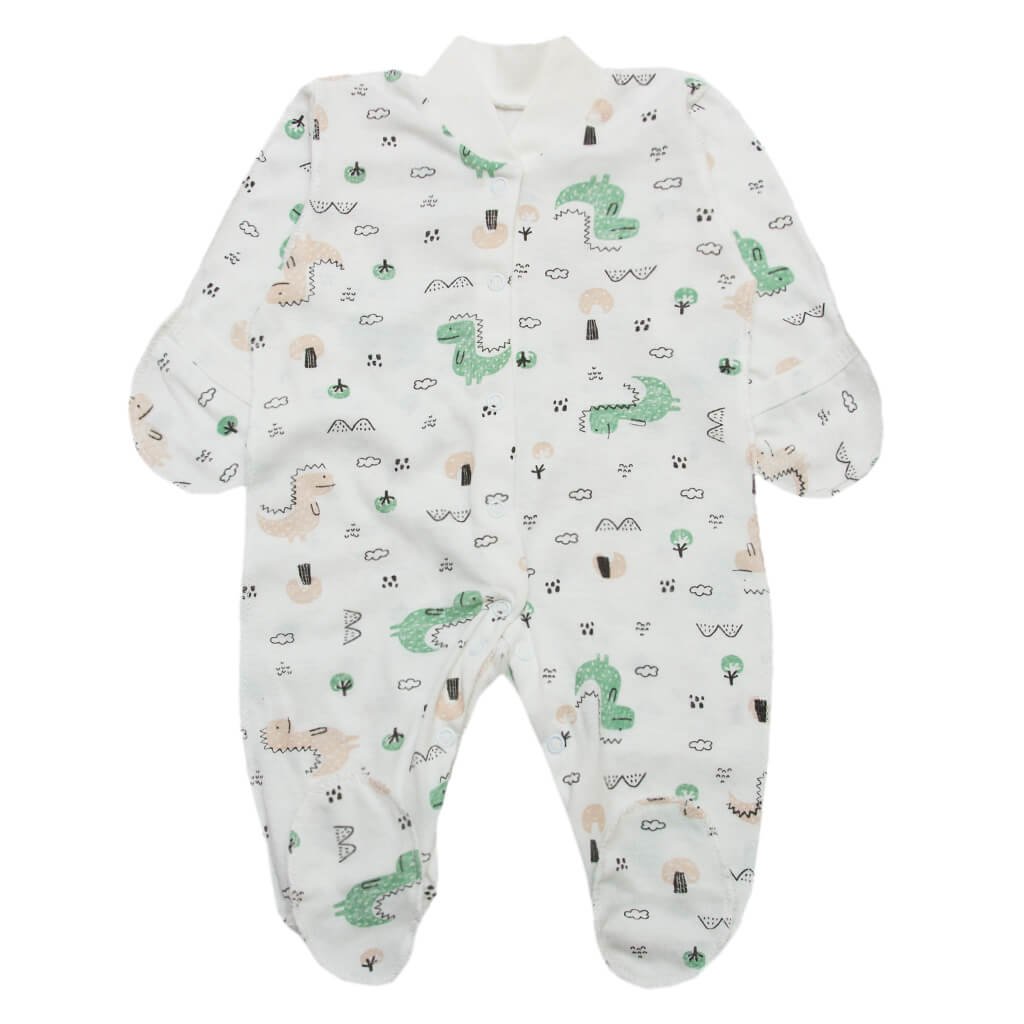 Белый спальник для мальчика с рисунком динозаврики пошитый из 100% хлопчатобумажного полотна - кулир. Спальник необходимая вещь в гардеробе каждого мальчика. Такие изделия очень удобные и практичны в использовании. Рукава закрыты антицарапками - что не позволяет вашему малышу царапать себя ноготками. Швы пошиты наружу, нежной коже малыша ничего не будет давить и мешать. Спальник застегивается на кнопочки по всей длине. В нашем интернет-магазине Вы найдете только качественные и красивые вещи для деток. Приятных покупок и хорошего настроения!