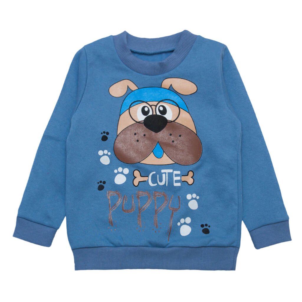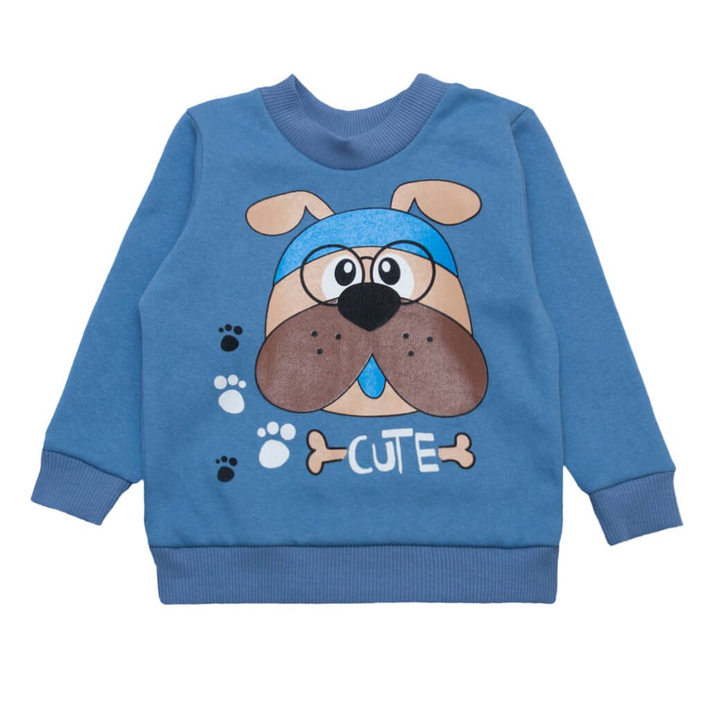 Детский джемпер - очень удобная и практичная кофточка для малыша. Джемпера с начесным утеплением идеально подходят для осени и зимы. Вашему вниманию представлена новая модель детской кофточки, которая выполнена из высококачественного трикотажного материала голубого цвета с принтом собачки. Края рукавов, горловины и низ изделия обработаны манжетами. Украшает джемпер невероятная покраска, которая расположена на передней стороне. Такой стильный джемпер можно с лёгкостью сочетать с абсолютно любыми джинсы и брюками. Наш интернет-магазин «Арлекин» будет очень рад Вашему заказу!