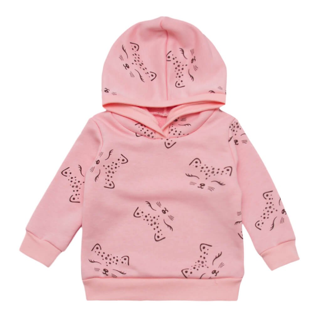 Готовы пополнить гардероб Вашего ребёнка стильным и современным вещами? Тогда Вы попали на нужный интернет-магазин, на нашем сайте только качественные изделия для малышей. Представляем Вашему вниманию невероятно модную и интересную кофту с капюшоном для девочки персикового цвета. Изготовлена из мягкого и приятного на ощупь полотна, 3-х нитка петля, большинство детских вещей изготавливаются именно с этого полотна. На ткани присутствуют привлекательные рисунки котиков. Также есть манжеты на всех краях данной кофты. Скорее оформляйте свой заказ на нашем сайте.