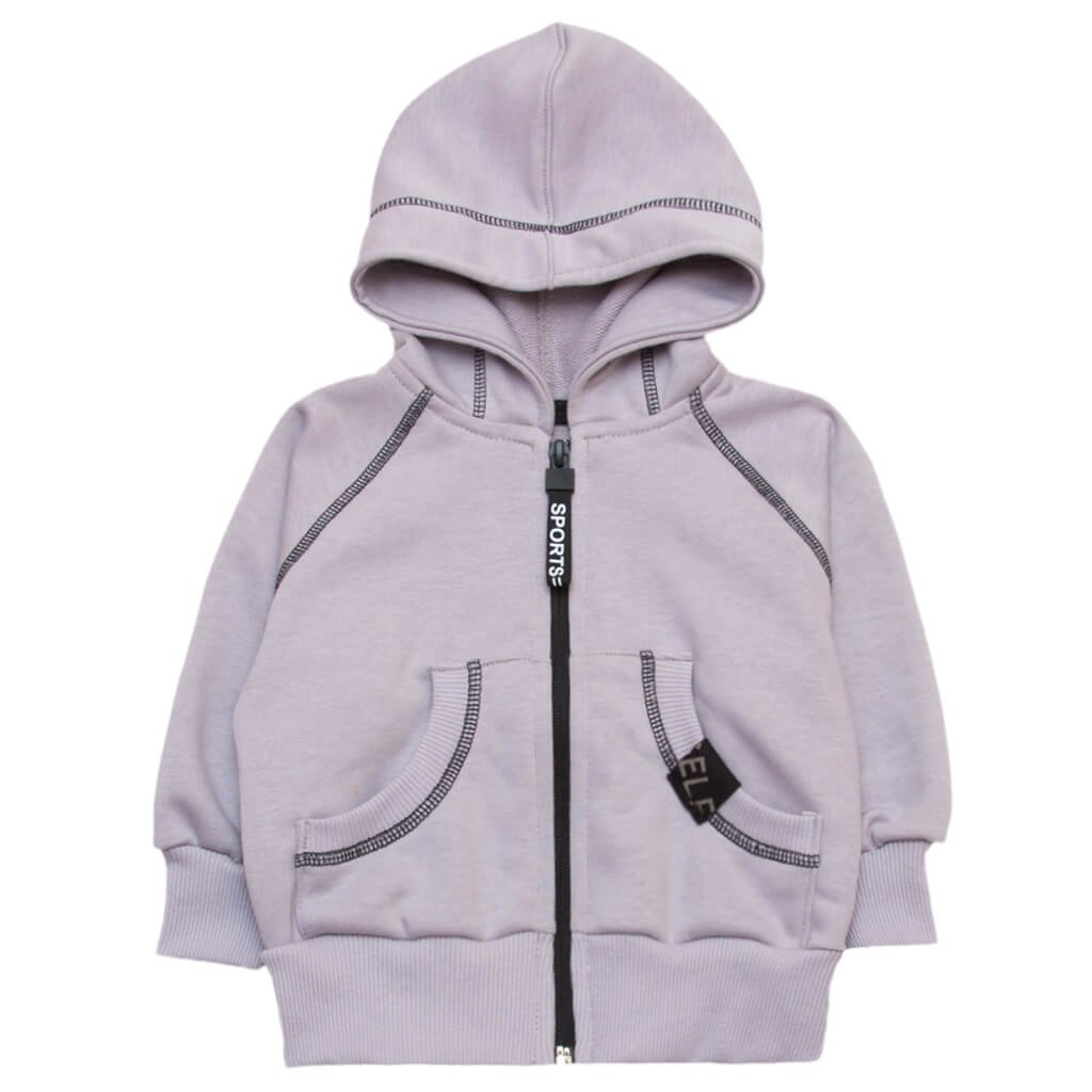 Кофта-курточка выполнена из полотна трехнить, которое имеет плотную структуру, но в то же время обладает мягкостью за счет основной хлопчатобумажной нити. Данная модель имеет капюшон и два кармана-кенгуру. Кофта серого цвета застегивается на молнию. Манжеты выполнены из качественного и красивого материала рубчик. Все швы отстрочены контрастной нитью, что придает изделию привлекательный вид. Разнообразие расцветок не оставят равнодушным ни одного родителя, а дети по достоинству оценят удобство этой модельки.