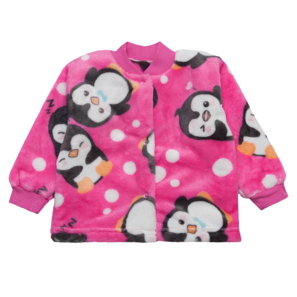 Очень теплая, невероятная мягкая и приятная к нежной коже малышки кофточка. Изделие изготовлено из качественного, плотного полотна - махра розового цвета с принтом пингвинов. На кофточке по переду кнопочки, воротник стойка, на рукавах манжеты из стрейча. Изделия из такого идеально подходят на холодную морозную погоду. Для дополнительного согревающего эффекта под кофточку можно одеть бодик или спальник, который Вы также можете приобрести в нашем интернет-магазине в разделе "Ясельный трикотаж". Приобретайте вещи торговой марки "Арлекин" и дарите деткам комфорт и радость.