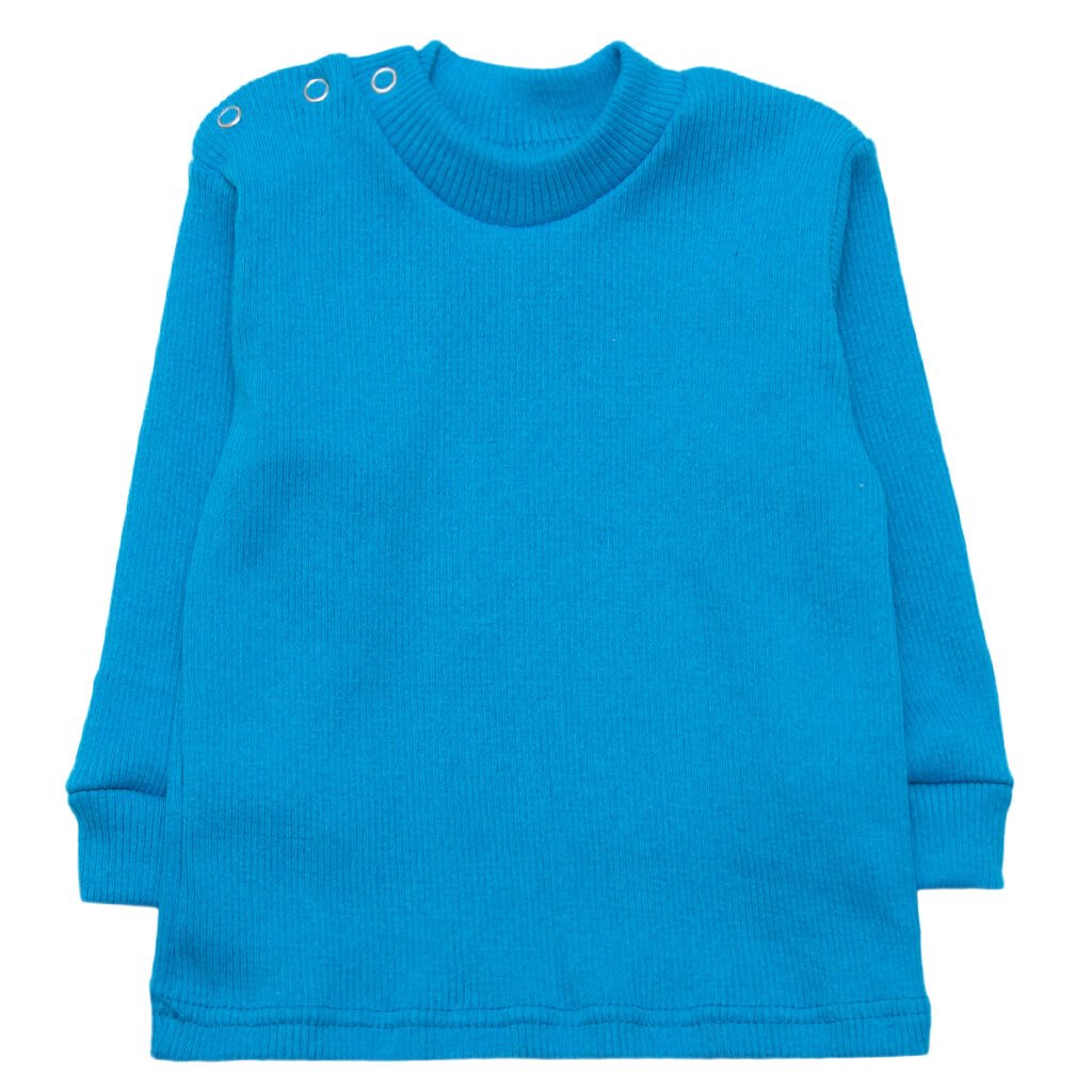 Представляем вашему вниманию теплую водолазочку для самых маленьких деток. Модель пошита из теплого, качественного полотна рубчик-начес, бирюзового цвета. Полотно приятное к телу, не теряет форму и цвет после стирки. В этой водолазке есть горловина стойка, что будет плотно закрывать шею малыша. А на плечике есть кнопки, что довольно удобно при переодевание. На рукавах манжеты, а низ обработан распошивом. В такой водолазке Вашему малышу будет очень тепло и к тому же комфортно. Выбирайте нужный цвет и размер и скорее оформляйте заказ.