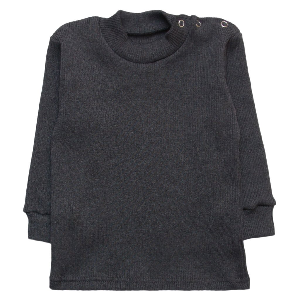 Представляем вашему вниманию теплую водолазочку для самых маленьких деток. Модель пошита из теплого, качественного полотна рубчик-начес, темно-серого цвета. Полотно приятное к телу, не теряет форму и цвет после стирки. В этой водолазке есть горловина стойка, что будет плотно закрывать шею малыша. А на плечике есть кнопки, что довольно удобно при переодевание. На рукавах манжеты, а низ обработан распошивом. В такой водолазке Вашему малышу будет очень тепло и к тому же комфортно. Выбирайте нужный цвет и размер и скорее оформляйте заказ.