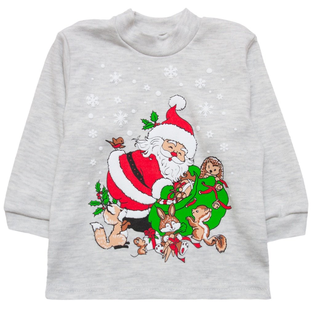 Водолазка для маленьких деток. Прекрасная вещь для малышей. Моделька выполнена из плотного трикотажа «интерлок» в модному серо-меланжевом цвете. Впереди водолазка украшена крупным рисунком "Дед Мороз" на веселую новогоднюю детскую тематику в тон. Горловина и рукавчики обработаны манжетами из основного полотна. Для удобства застежка смоделирована из трёх кнопочек на одном плече. Водолазка будет прекрасно гармонировать с любыми штанишками, джинсиками, шортиками и т.д. ТМ Арлекин беспокоится о комфорте вашем и ваших детей. Мы дарим хорошее настроение. Приятных покупок!