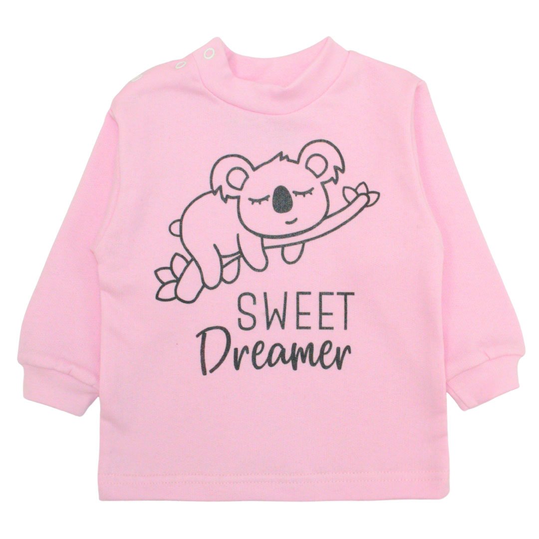 Новая модель детской водолазки светло-розового цвета с принтом коалы точно понравится Вашему ребенку. Изделие пошито из мягкого начесного полотна, благодаря чему она подарит тепло и обеспечит комфорт на протяжении всего дня. Благодаря натуральному и гипоаллергенному материалу, водолазка не вызывает раздражения на нежной детской коже, что особенно важно для малышей. Две кнопки на плече делают процесс одевания и снятия одежды максимально удобным и быстрым. Модель представлена в нескольких цветах, что позволяет выбрать вариант на любой вкус. Выполнена свободного кроя, не сковывает движений и отлично сочетается с другими предметами гардероба.