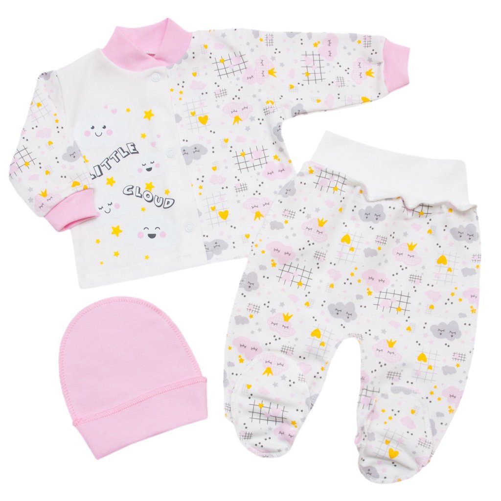Розовый комплект для девочки изготовлен из качественного хлопчатобумажного полотна - интерлока. Данный комплект состоит из кофты, штанишек и шапочки. Кофточка и штаны пошиты из ткани с рисунком, а шапочка из однотонного полотна. Кофта застёгивается на кнопочки, на горловине и рукавах есть манжеты. Чтобы малышке было удобно, штаны внизу закрыты и будут хорошо сидеть на Вашей маленькой принцессе благодаря резинке. Швы шапочки идут наружу. Представленный комплект есть в размере на рост 36 и 40. Ждём с нетерпением Ваш заказ в нашем интернет-магазине «Арлекин»!- Пол: Девочка