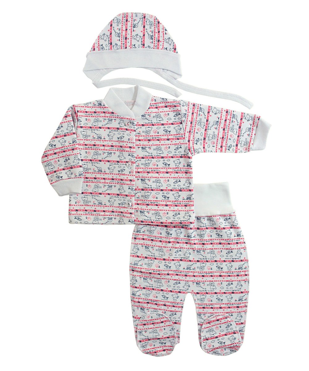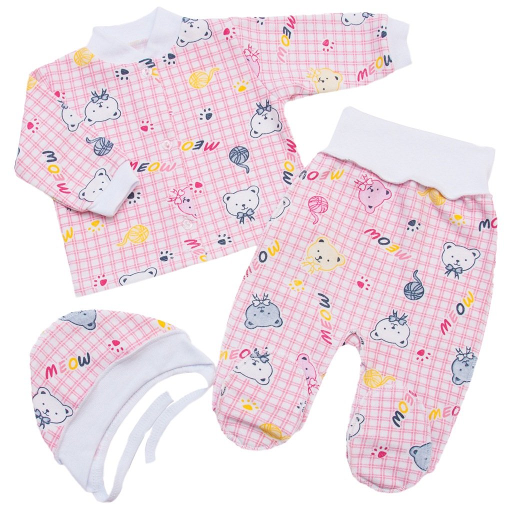 Ясельный комплект для девочки. Комплект для повседневной носки должен включать в себя удобство и комфорт одевания, тактильную мягкость и экономичность покупки. Кофточка с удобной застёжкой на пуговках, намного упростит процедуру одевания. А приклады по горловине и манжеты - не дадут сквознякам потревожить вашего малыша. Мягкий пояс ползунов - не будет давить нежное тельце малыша, а стоячие носочки сделают движения ножек проще. Чепчик окантованный бейкой с завязками, надёжно будет держаться на маленькой головке. Полотно "начёс", с мягким петельным футером по изнанке, очень приятный к телу и дарит вашему малышу тепло и комфорт.