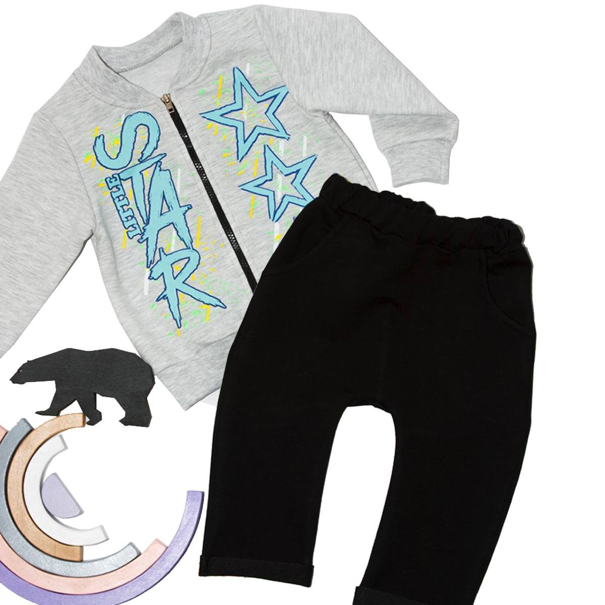 Еще один красивый комплектик для маленьких модниц. Пошит он из полотна — двунитки. Состоит это полотно из 94% хлопка и 6% лайкры. В комплект входит кофта и штаники. Кофточка застегивается на молнии. Низ, рукава и горловина на манжетах. Декорирована кофта большим ярким принтом. Штаники на резинке. Внизу с модными подворотами. Покрой этих штаников стает все больше популярней. Выглядит стильно и ребенок в них чувствует себя удобно. В наличии разные расцветки. Желаем приятных покупок в нашем интернет-магазине!