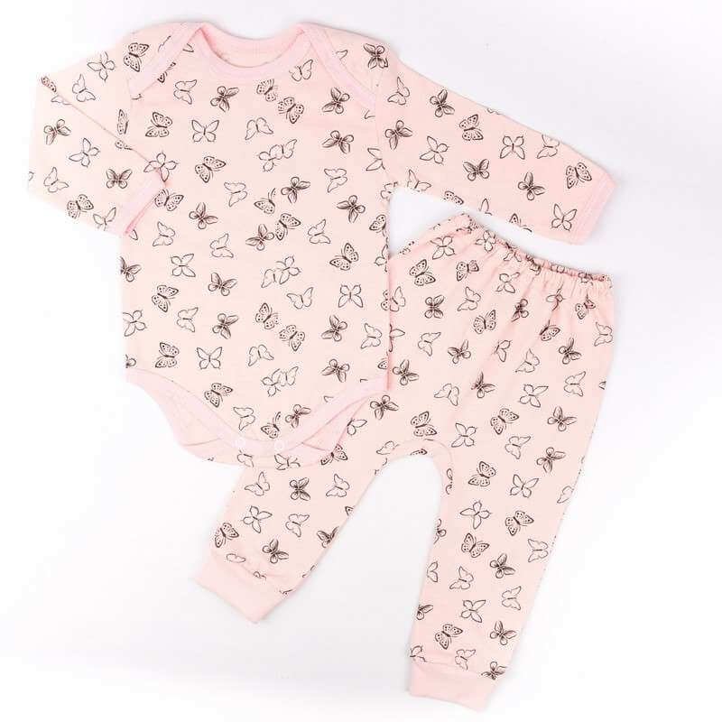 Многие родители знают, что одной из самых удобных одежек для малышей является боди. Такие изделия отлично прилегают к телу ребёнка, не задираются и не доставляют дискомфорт. Новая модель детского комплекта состоит из боди с длинными рукавом и штанишек на мягкой резинке. Изделия пошиты из высококачественного кулира, которое на 100% состоит из натурального хлопка. Также на полотне есть различные рисунки. Верх боди выполнен в виде «лодочки». А низ изделия застёгивается на кнопочки. По низу штанишек присутствуют эластичные манжеты.