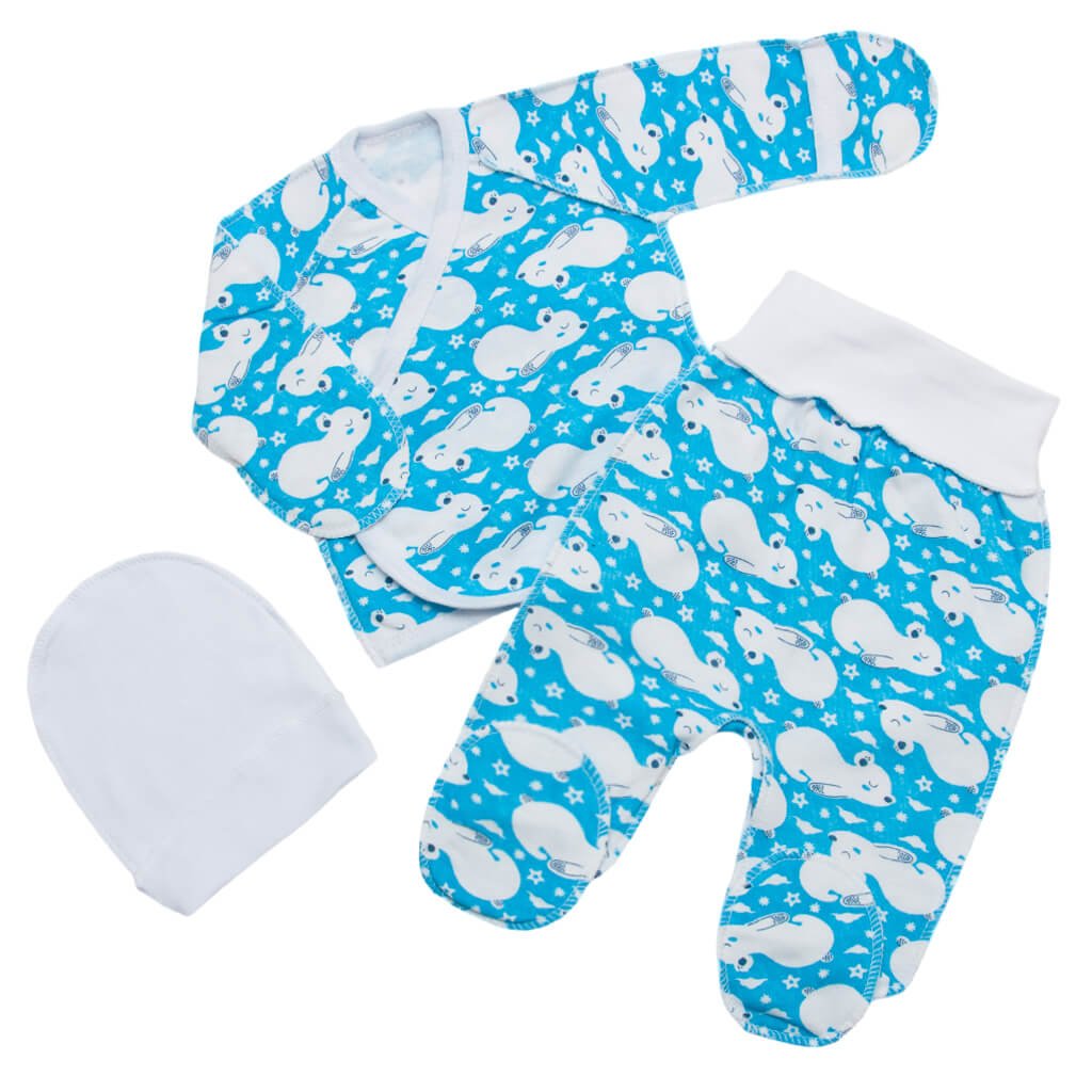 Интернет-магазин «Арлекин» представляет Вашему вниманию новый утеплённый комплект для самых маленьких. Бирюзовый комплект принт мишки состоит из распашонки, ползунков и шапочки. Распашонка выполнена с закрытыми ручками и застёгивается на запах, при помощи кнопочек. На поясе штанишек есть мягкая широкая резинка. Изделия пошиты из высококачественного натурального полотна - начеса. Шапочка изготовлена из мягкой тонкой ткани. Представленный ясельный комплект - незаменимая вещь в гардеробе каждого малыша. Скорее оформляйте заказ в нашем интернет-магазине!